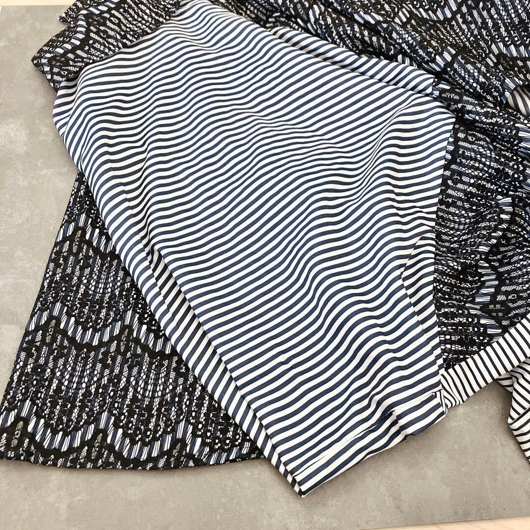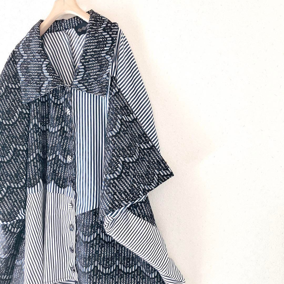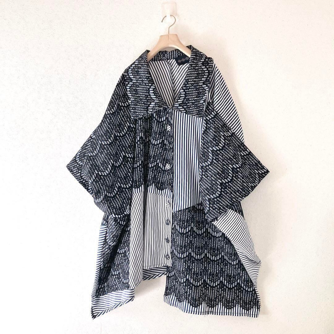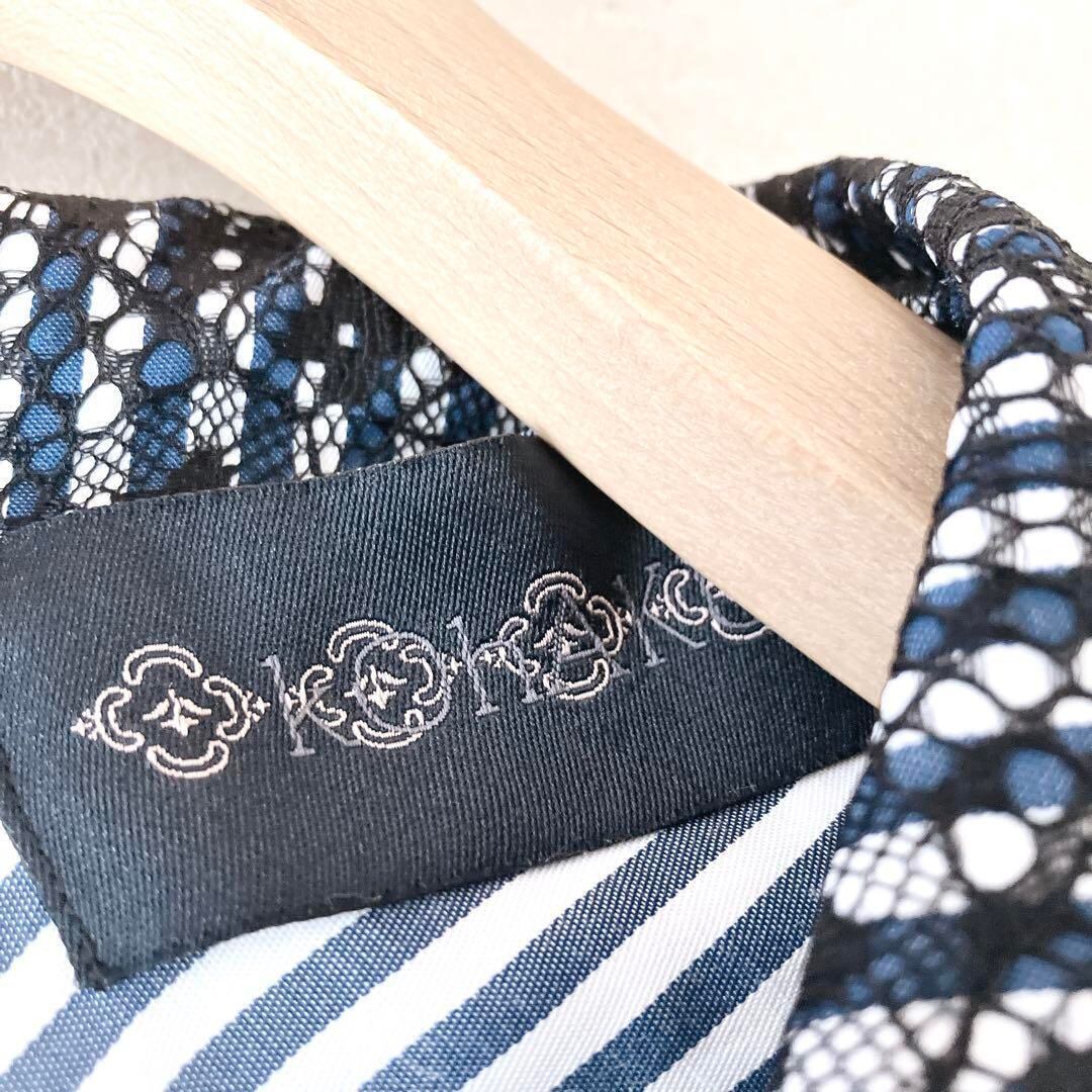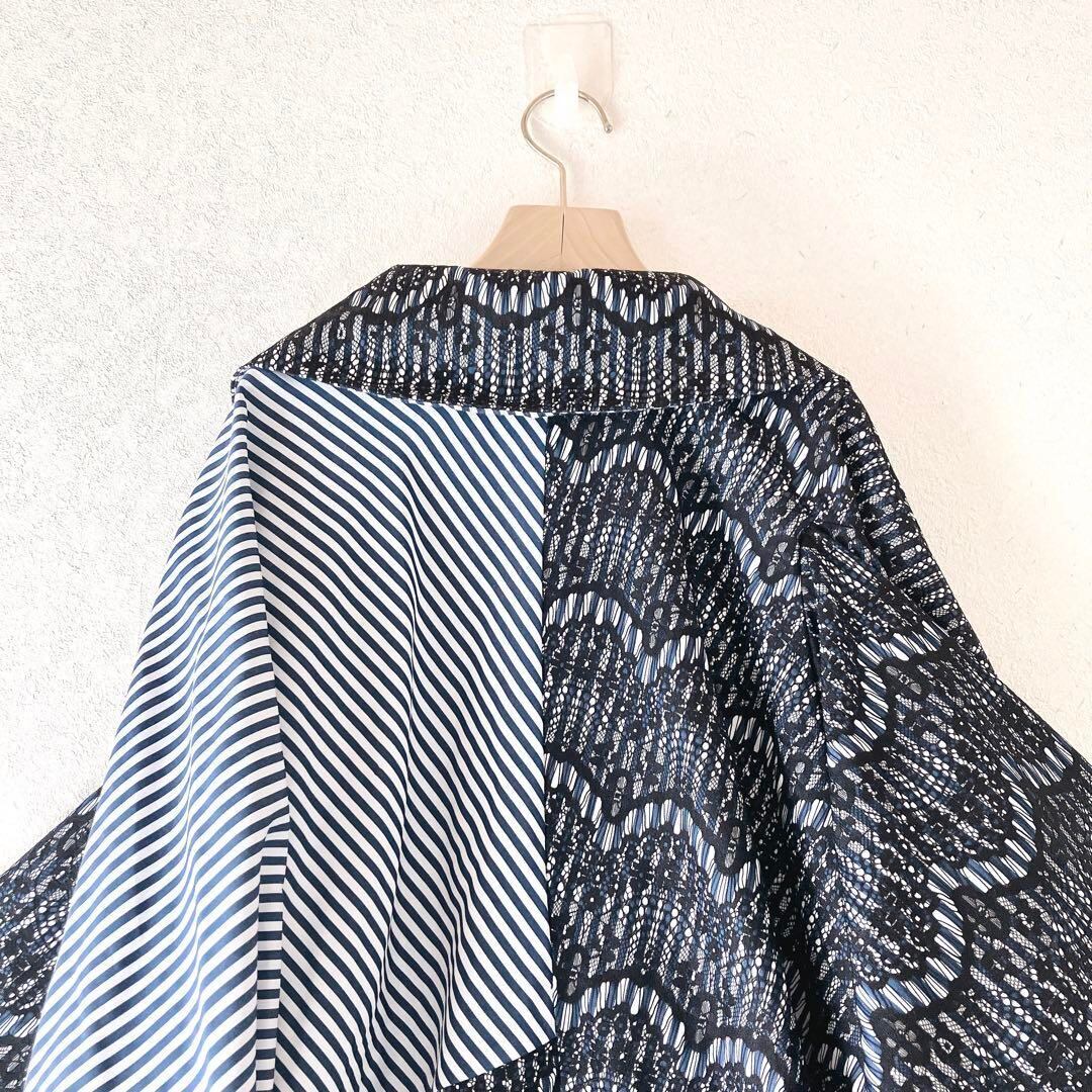 kOhAKU コハク ストライプ柄 変形 ブラウス シャツチュニック 花柄 レース 個性派 体系カバー ゆったり