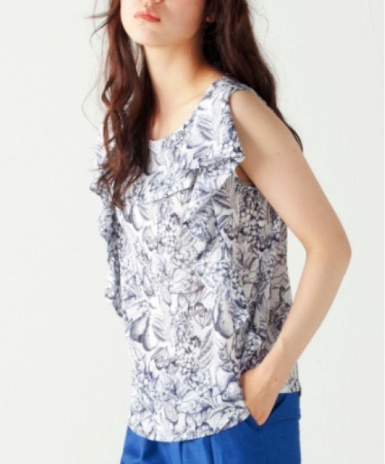 le.coeur blanc(ルクールブラン)の、繊細な線画プリントが目を惹くラッフルブラウスです。