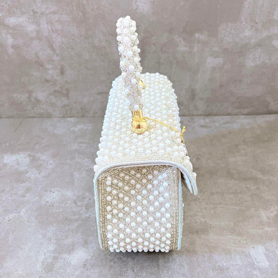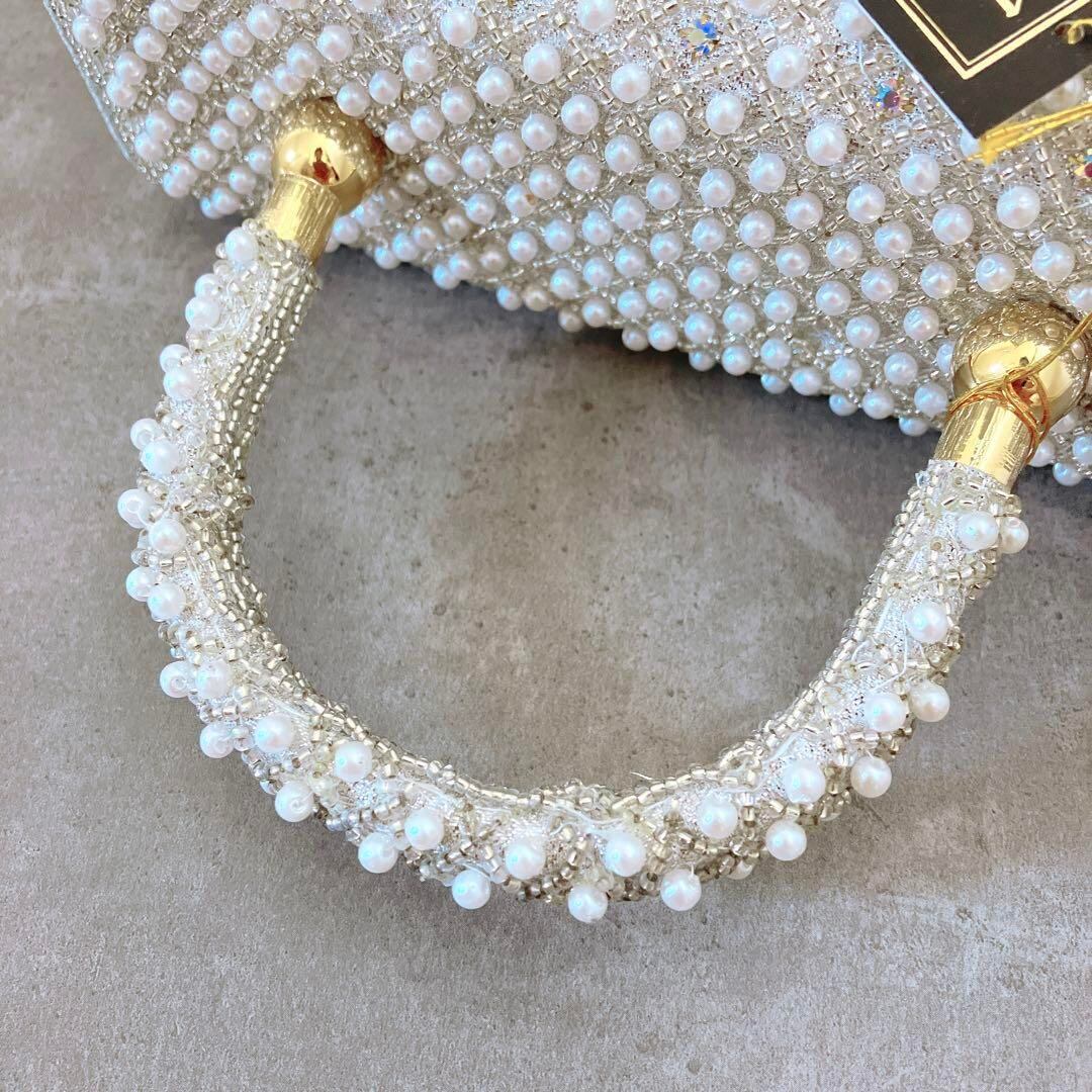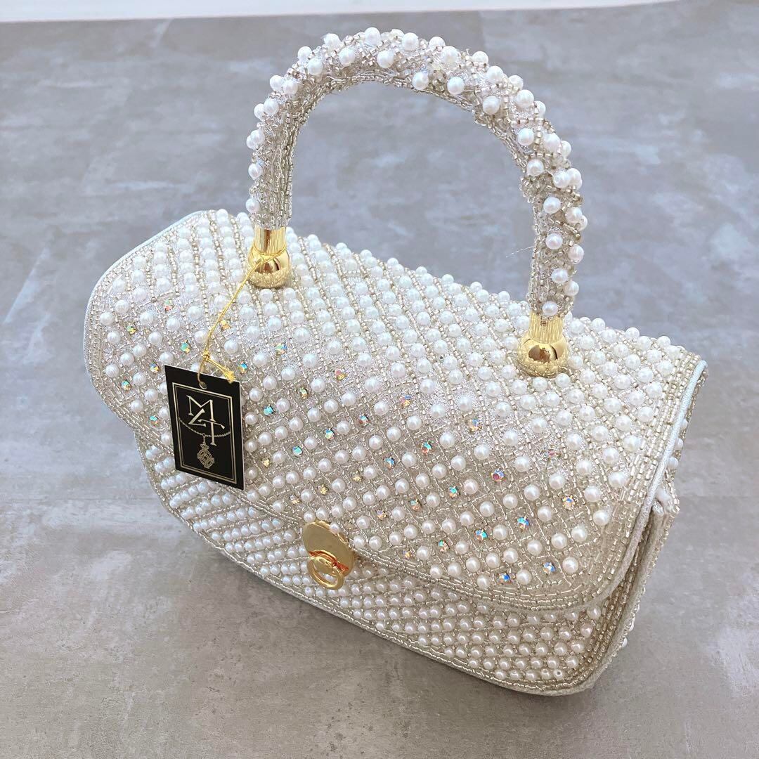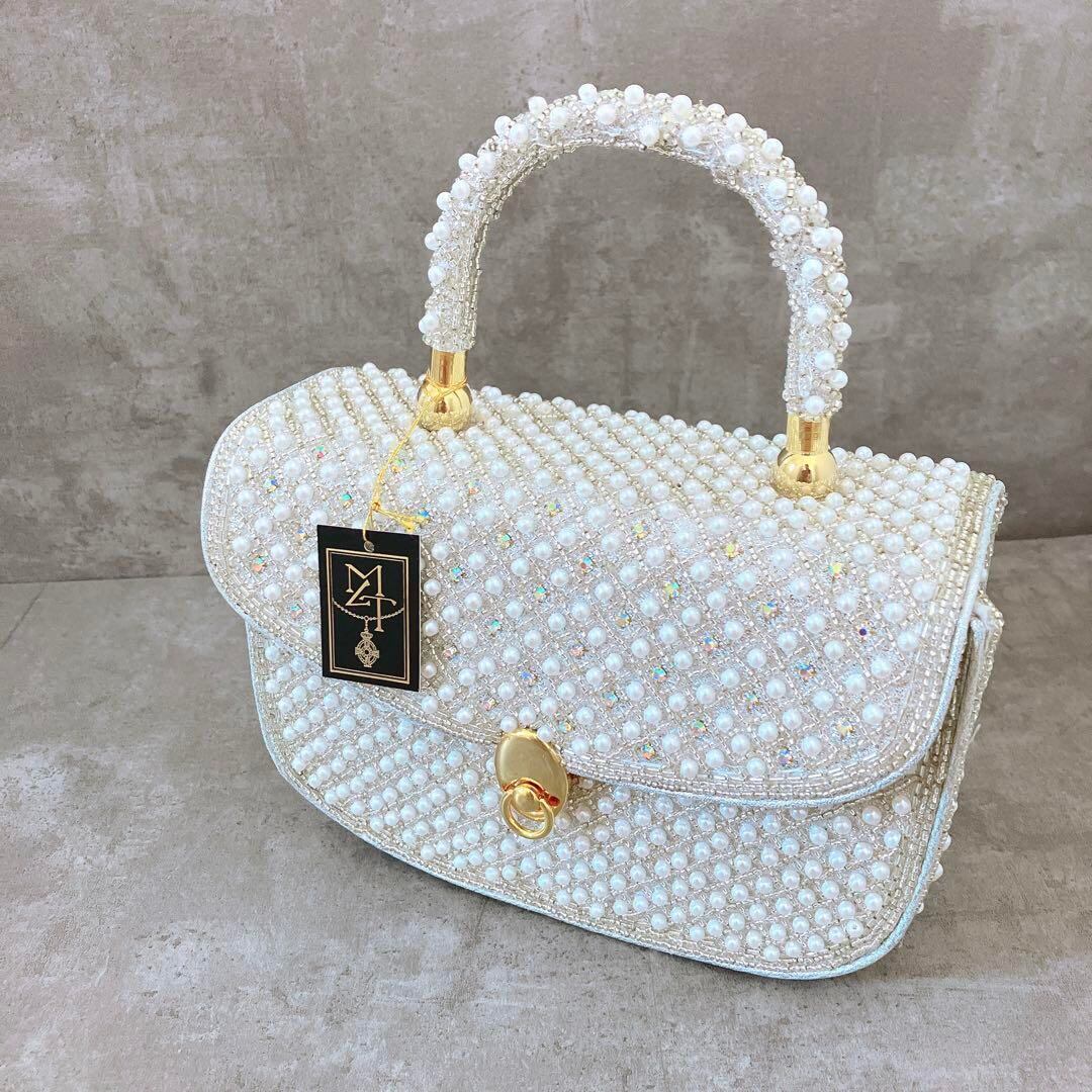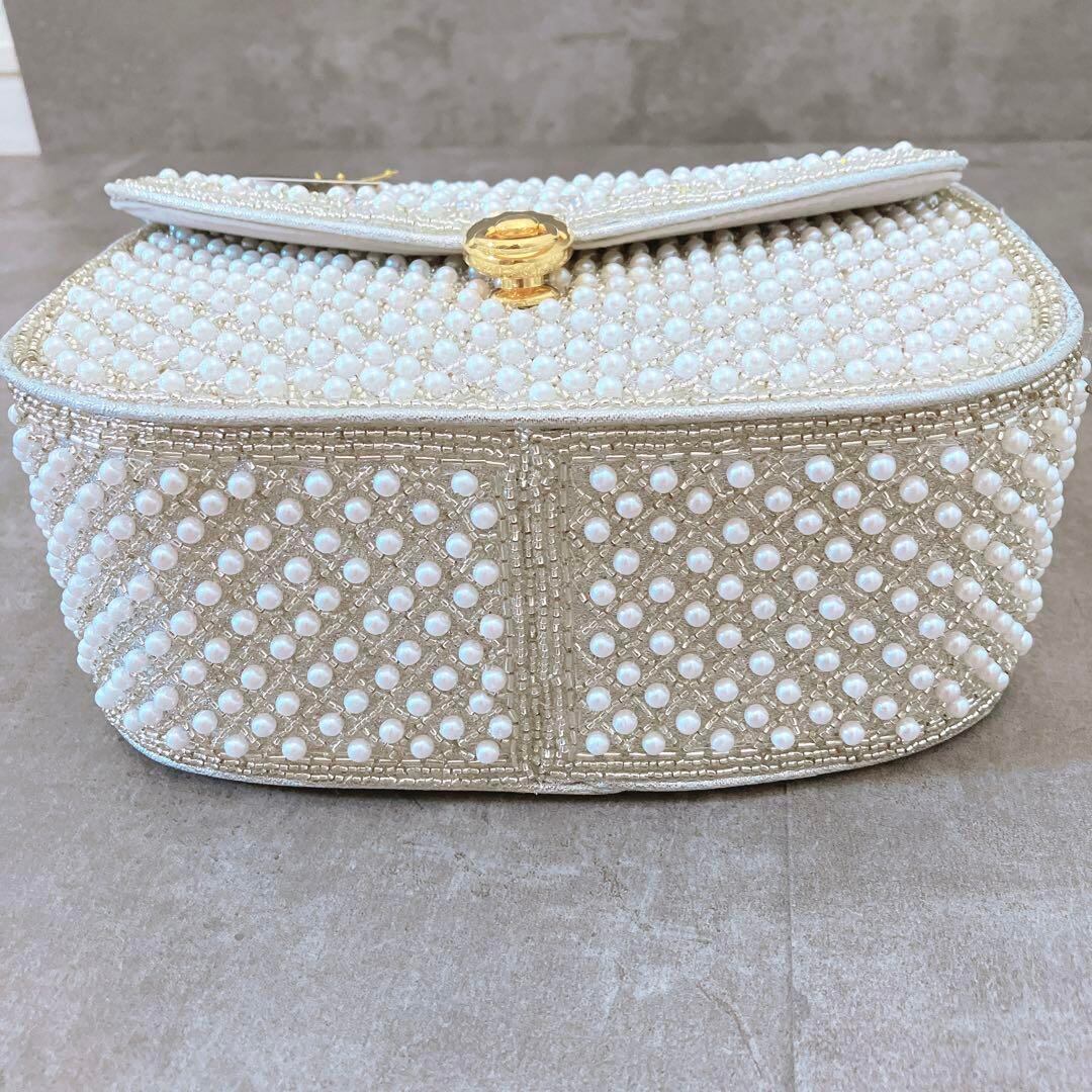 【新品 未使用】 送料無料 パール ビーズバッグ ビジュー 結婚式 パーティー フォーマル 上品 オケージョン 小物 キラキラ