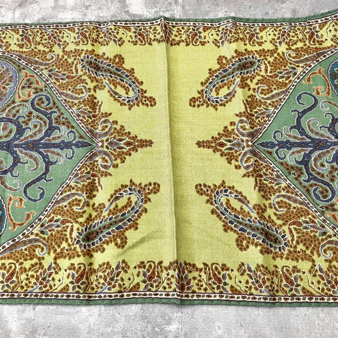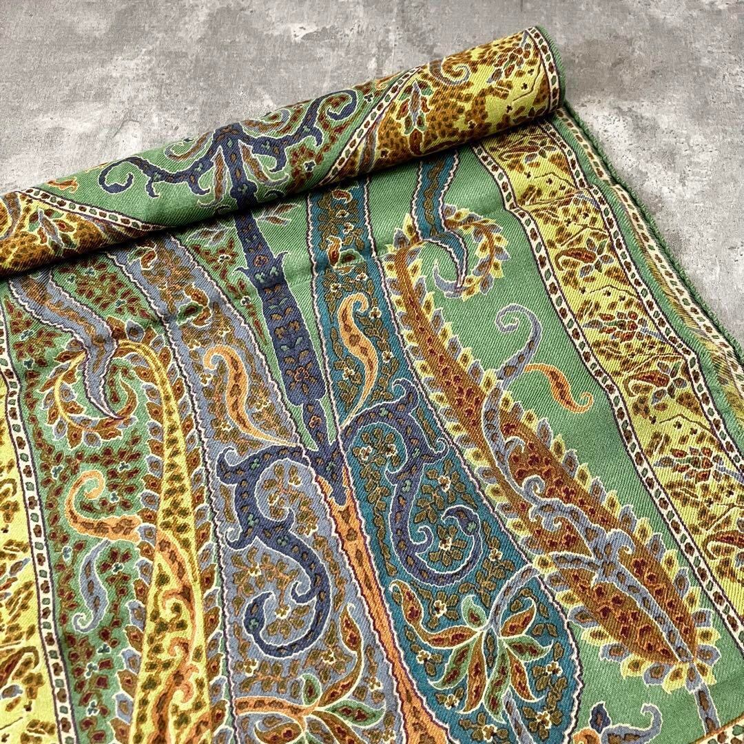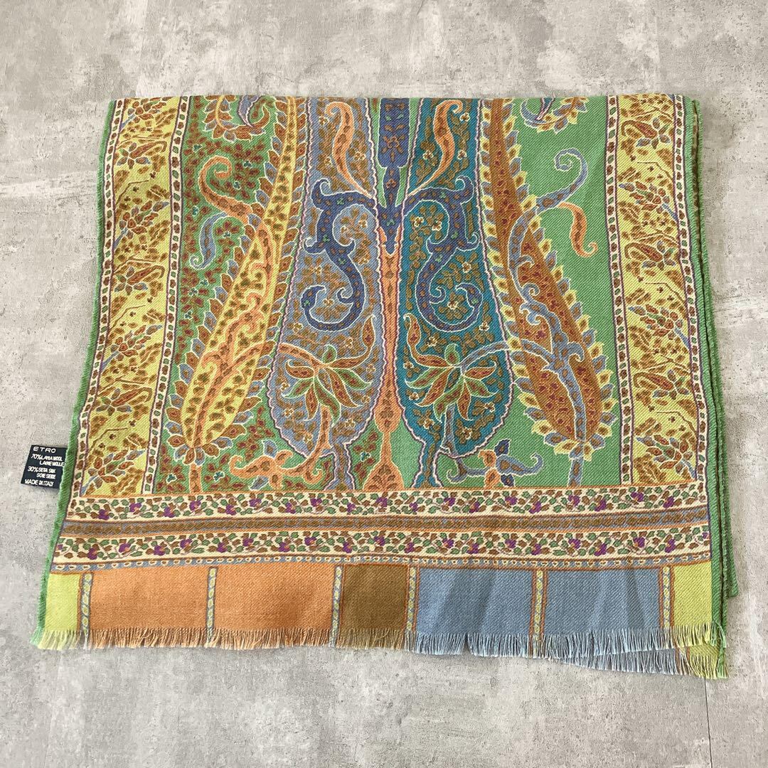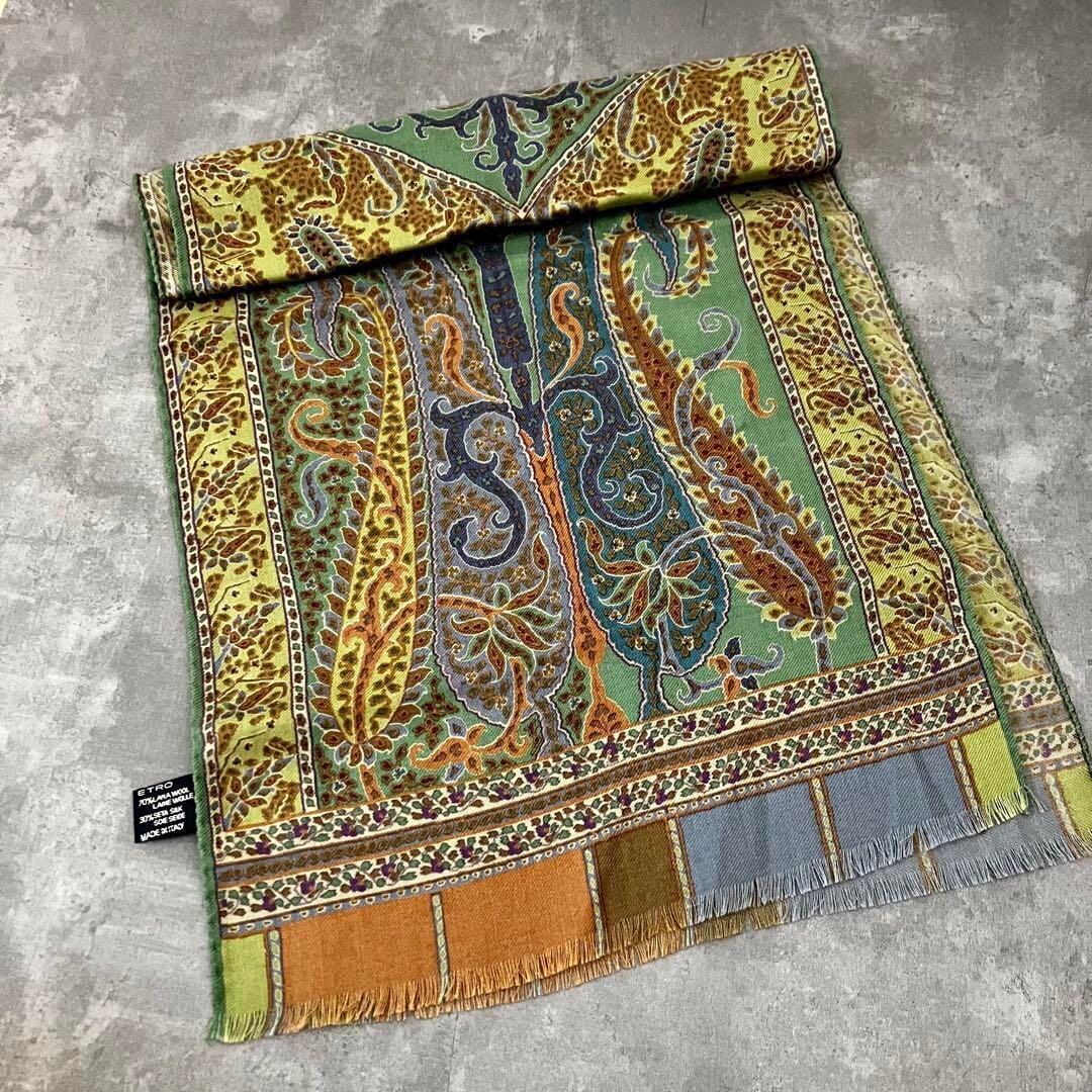 ETRO エトロ ペイズリー柄 ストール グリーン ウールシルク 美品 エトロストール イタリア製 エトロコーデ 大人ファッション 秋冬小物 エレガントコーデ プレゼント上質アイテム グリーンコーデ