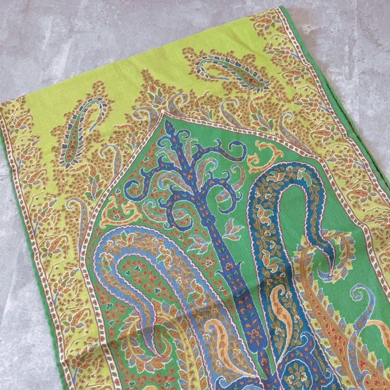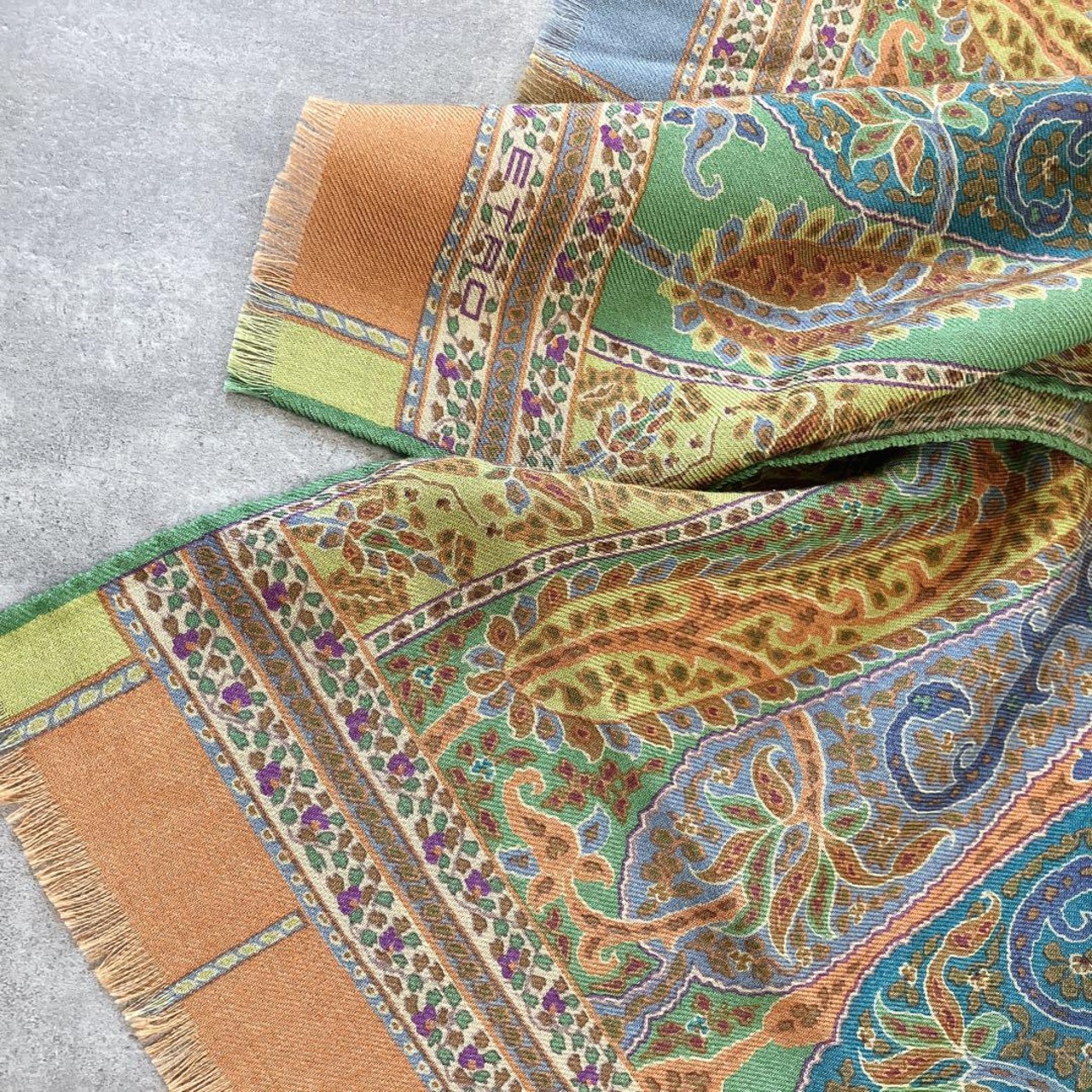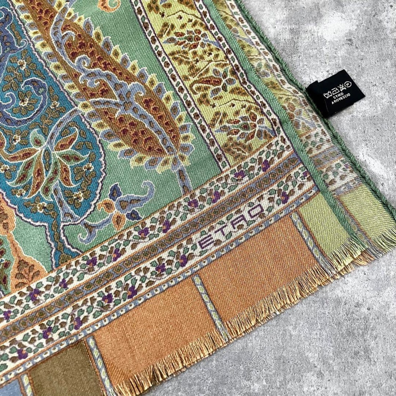 ETRO エトロ ペイズリー柄 ストール グリーン ウールシルク 美品 エトロストール イタリア製 エトロコーデ 大人ファッション 秋冬小物 エレガントコーデ プレゼント上質アイテム グリーンコーデ
