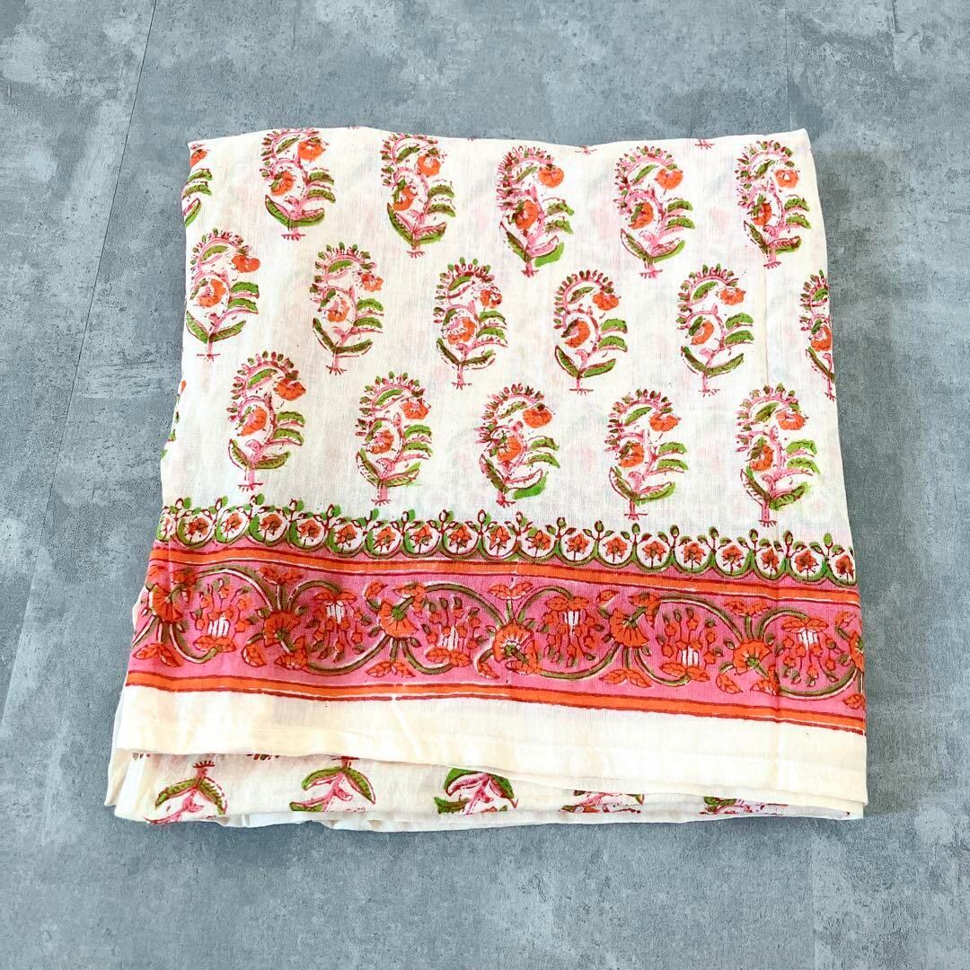 どちらも植物モチーフのブロックプリントが施され、インド綿のような軽やかで柔らかな素材感が魅力。