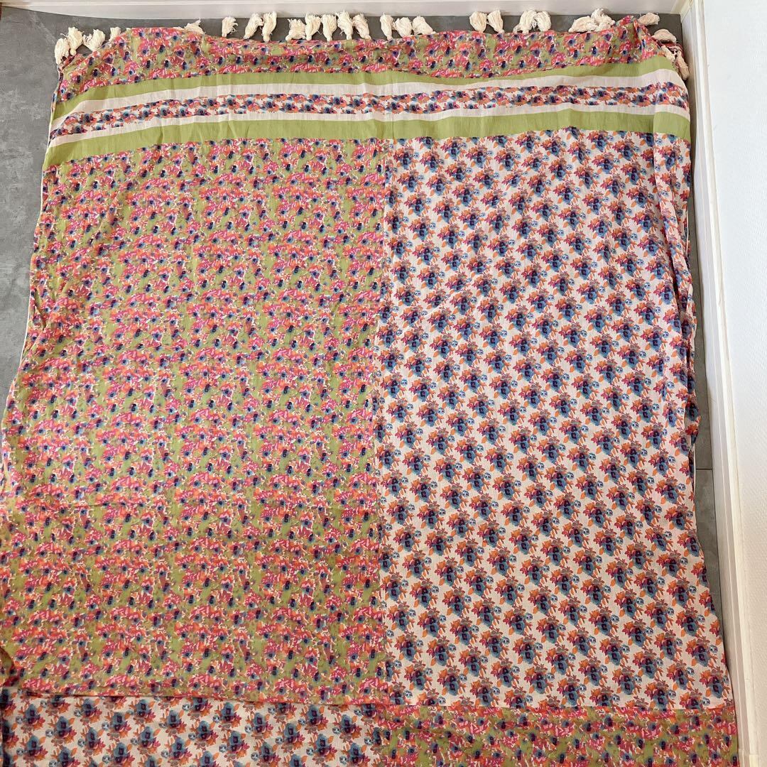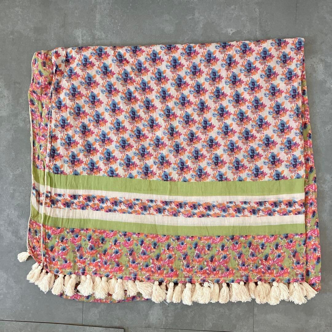 ナチュラル花柄*インド綿 パッチワーク 大判ストール マルチクロス タッセル付き