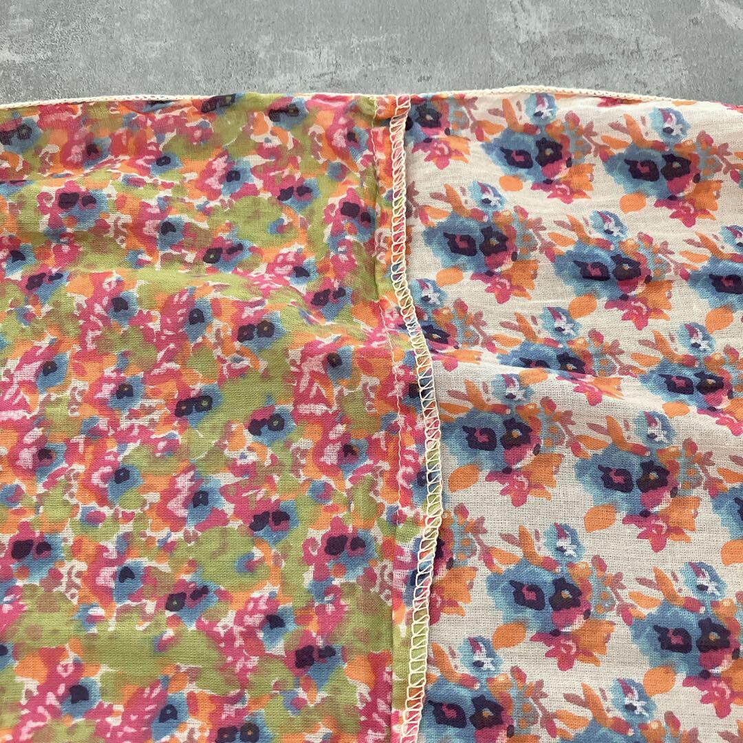 2種類の花柄ショールを丁寧に縫い合わせた、大判サイズのストールです。