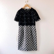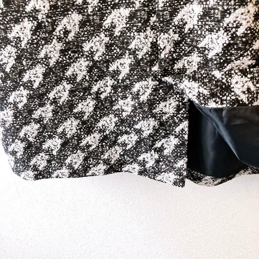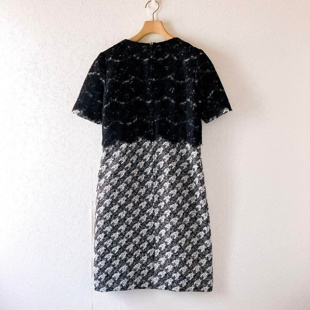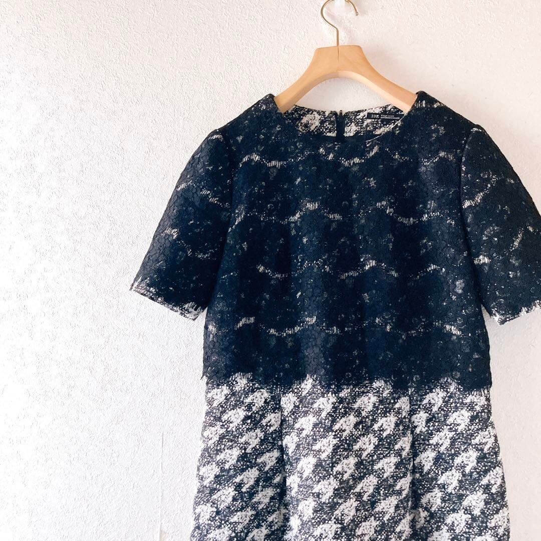 ツイード素材と花柄レースの切替デザインが上品で、セレモニーやお食事会などフォーマルシーンにもおすすめです。