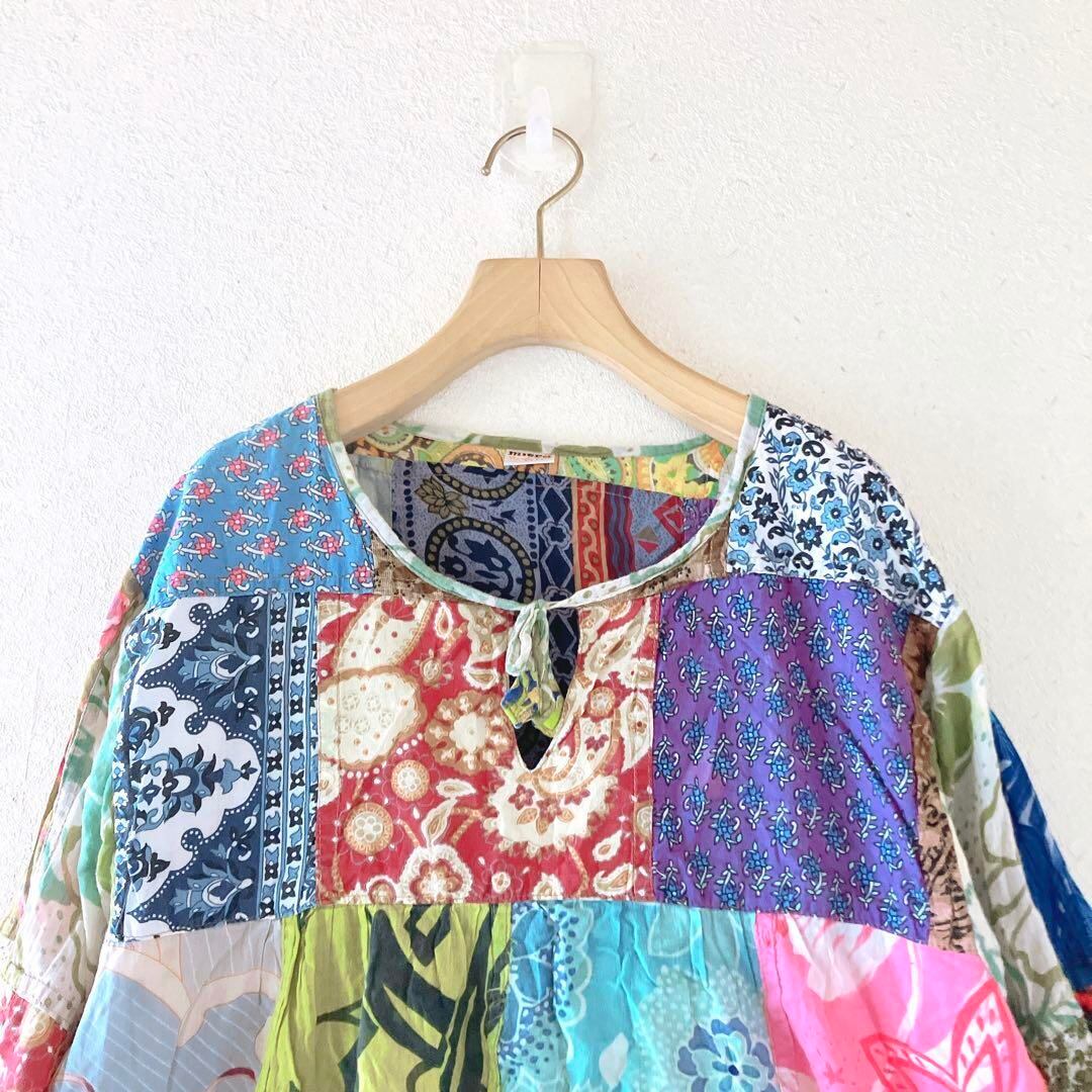MITRA ミッタラ ミトラ パッチワーク 花柄 シャツ エスニック 個性派 L パッチワークシャツ カラフルコーデ エスニックファッション アジアンファッション 古着女子 ナチュラルファッション 個性派 | nijiきれいな古着屋さん