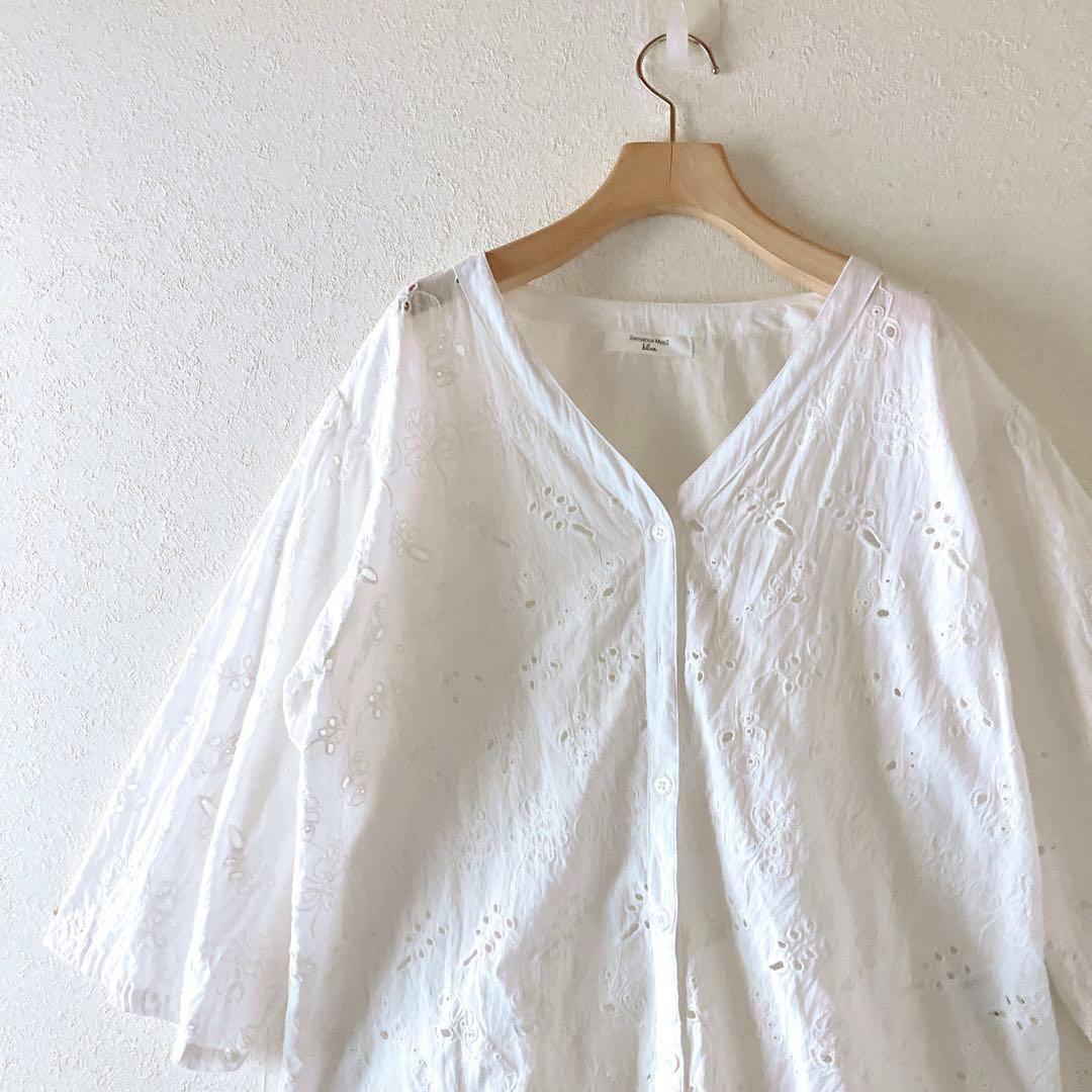 #SM2 #サマンサモスモス #ナチュラル服 #レースブラウス #刺繍ブラウス #カットワーク #白ブラウス #ナチュラル系ファッション