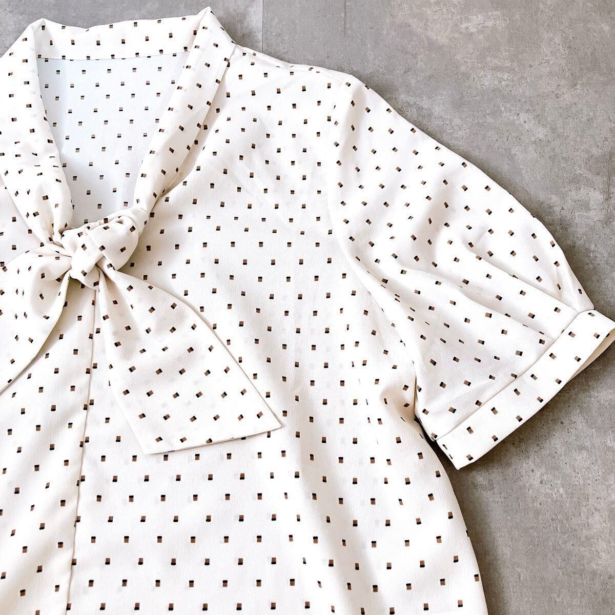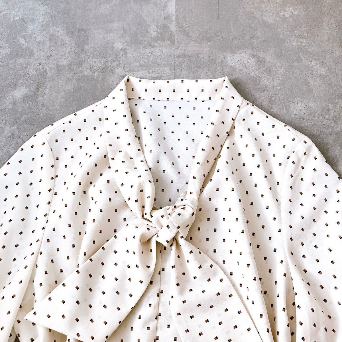 グローブ grove スクエア ドット柄 総柄 ボウタイ リボン ブラウス シャツ 上品 フォーマル ワールド ビジネス M 大人フェミニン オフィスカジュアル #セレモリスタイル 通勤コーデ きれいめブラウス 春夏コーデ 上品コーデ ブラウスコーデ ゆるかわコーデ