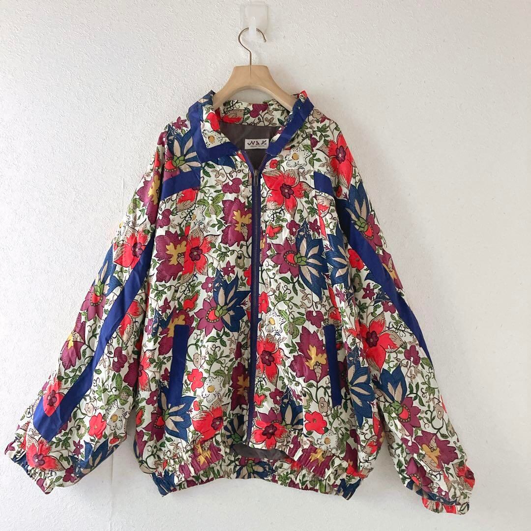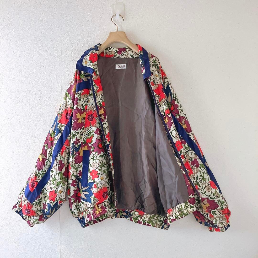 Vintage ヴィンテージ 花柄 ブルゾン ジャケット 薄手 シルク オーバーサイズ フラワー SilkJacket 派手豪華 FloralJacket 古着女子 古着コーデ 一点物 レトロファッション ヴィンテージコーデ