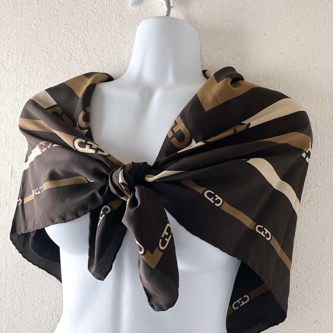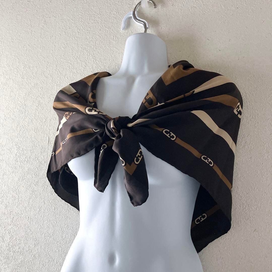 SalvatoreFerragamoサルヴァトーレ フェラガモ 大判スカーフ ガンチーニ 茶色 ヴィンテージスカーフ ブランドスカーフ 大判スカーフ レディースファッション 高級スカーフ 本物スカーフ