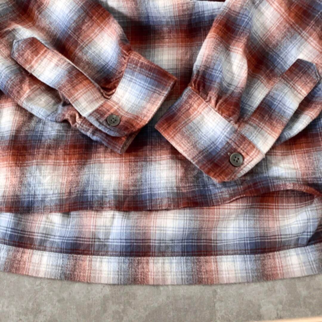 オレンジ×ブルーのグラデーションチェックが映える一枚です。