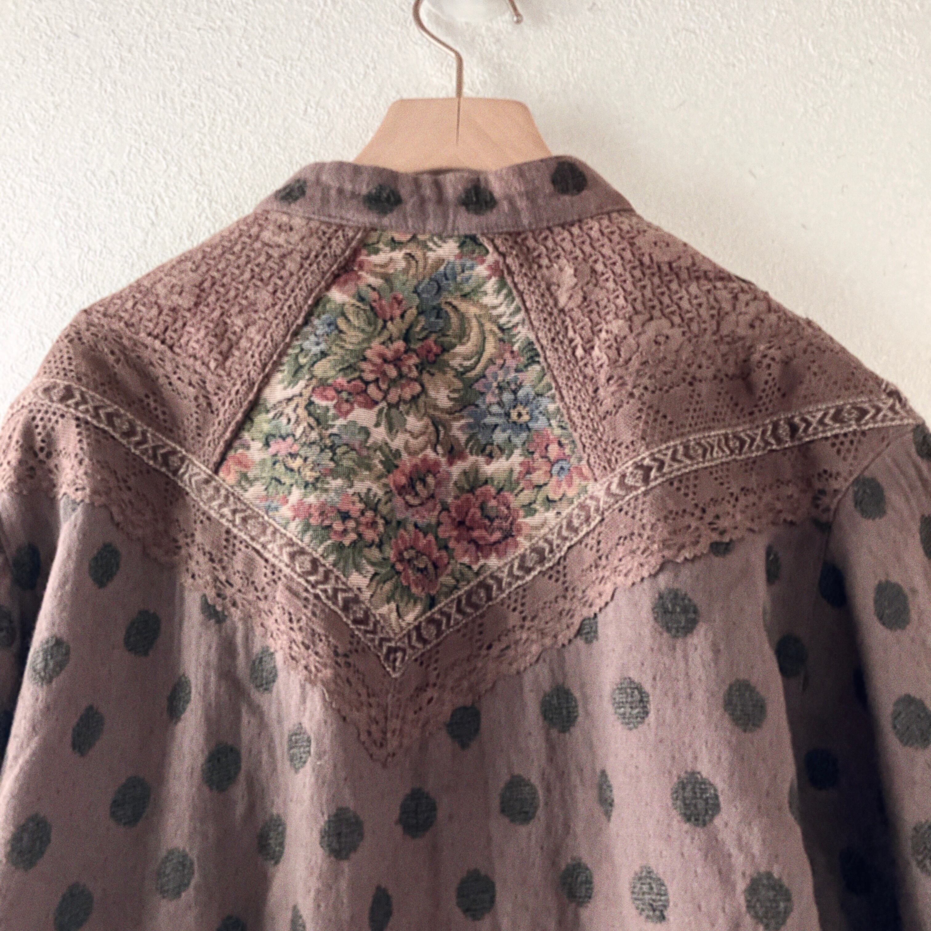 くすみモーブブラウン × オリーブドット × 花柄ゴブラン × レース