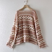 ハンドメイド風の優しい編み目とお花モチーフがかわいいデザイン。