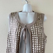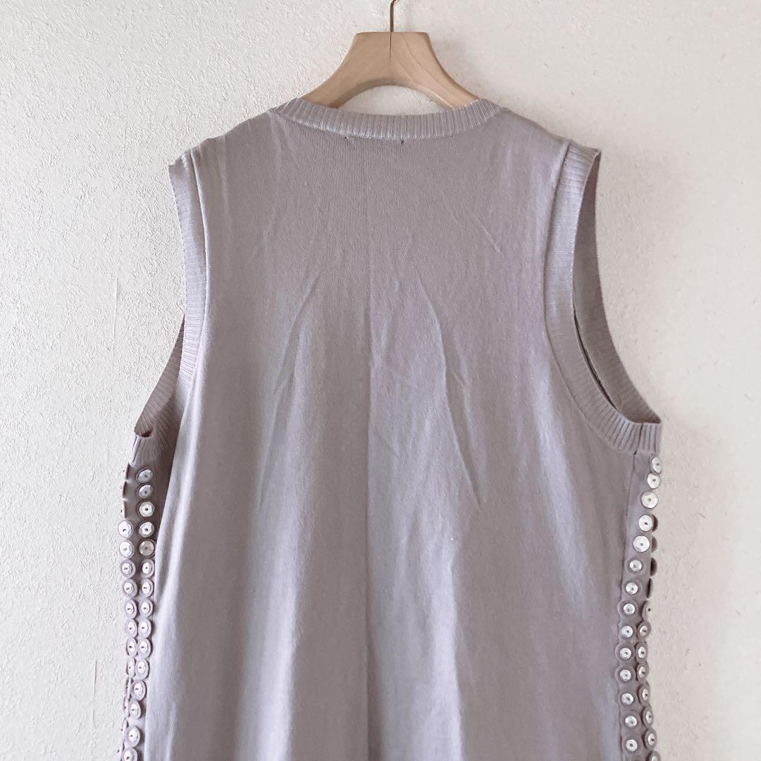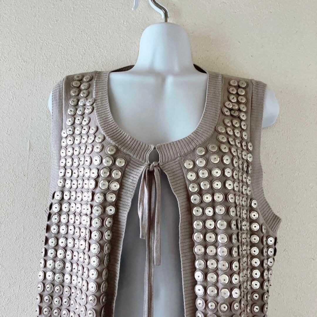 Dolce Cabo ドルチェカボー スパンコール×ニット ロングジレ リヨセル グレージュ 上品シルエット ノースリーブ 薄手 個性派 大人コーデ きれいめカジュアル 羽織りコーデ | nijiきれいな古着屋さん