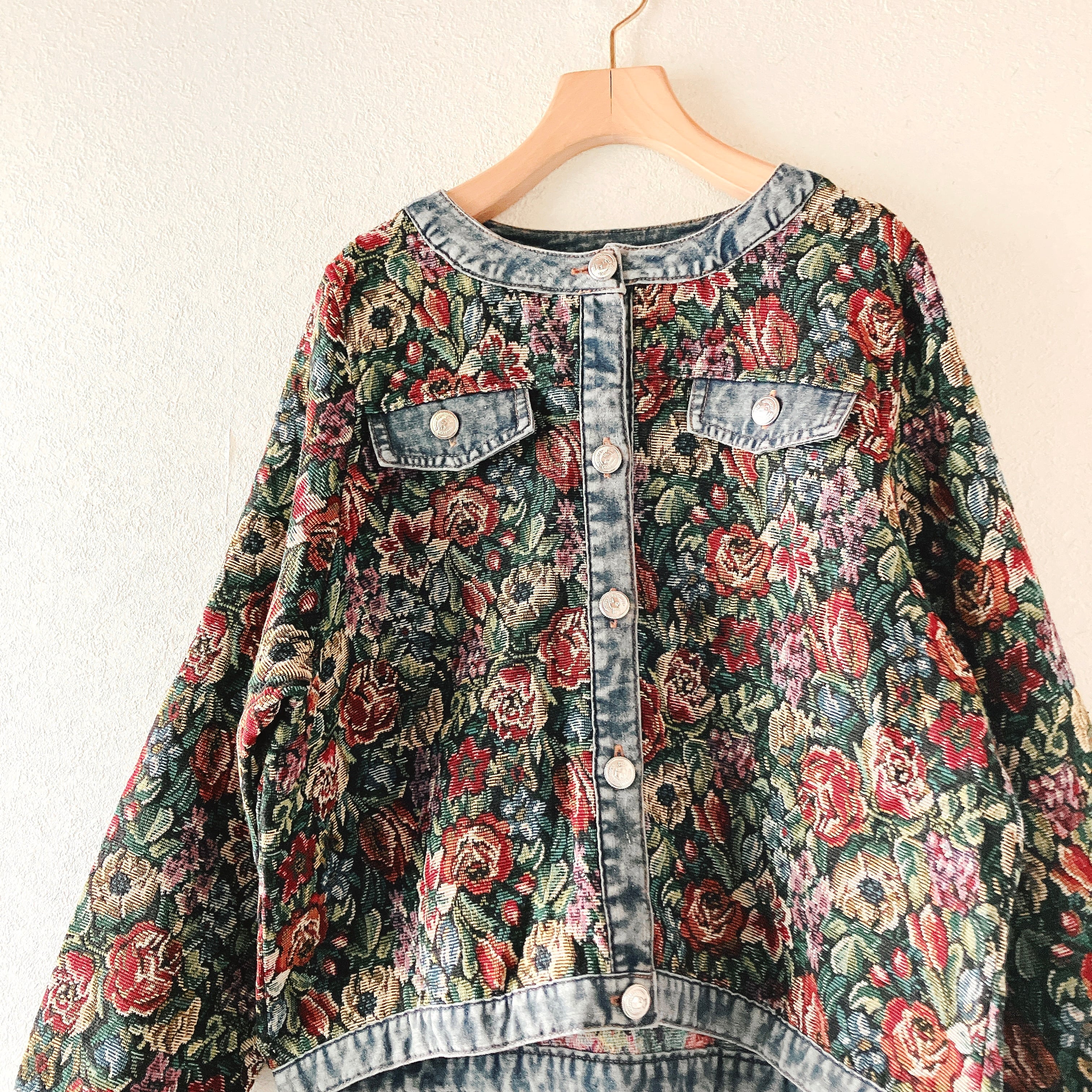 花柄ゴブラン織りとデニムの切替デザインが主役のアートジャケット。