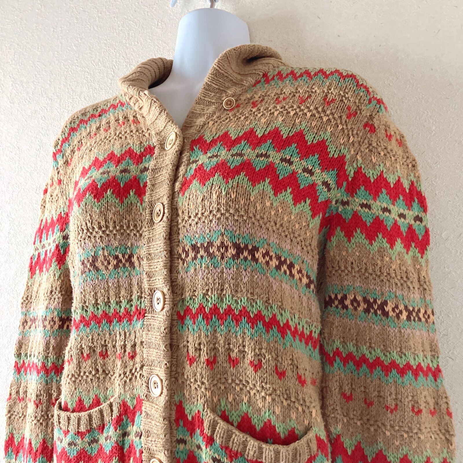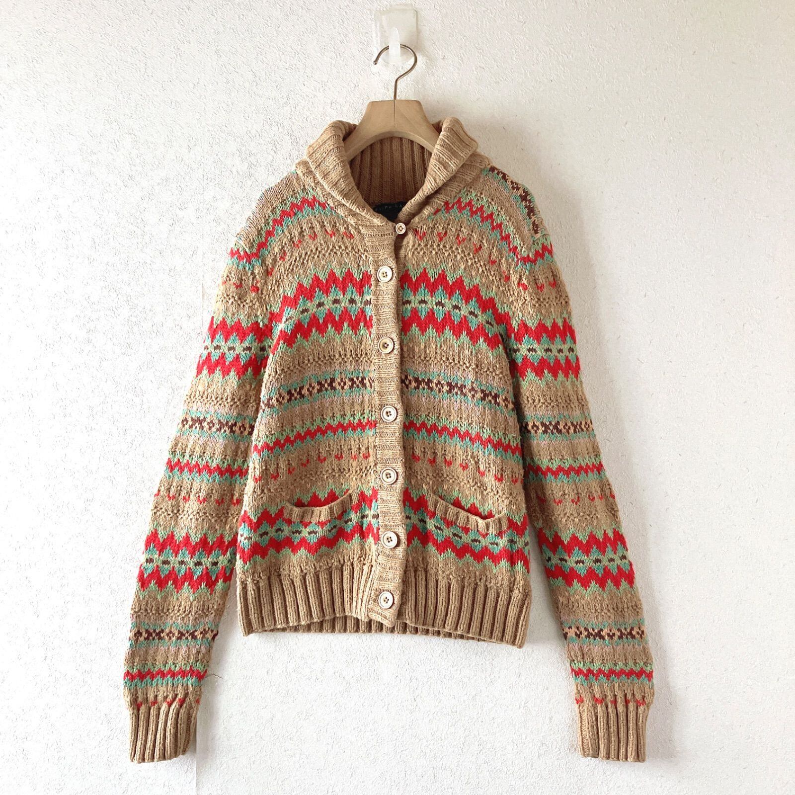 Ralph Lauren ラルフローレン フェアアイル柄 ノルディック柄 総柄 ショールカラーニット カーディガン コットン100% ベージュ マルチカラー トラッド アメカジ ナチュラル ベージュ系 アースカラー レディース 9号 Mサイズ相当 古着