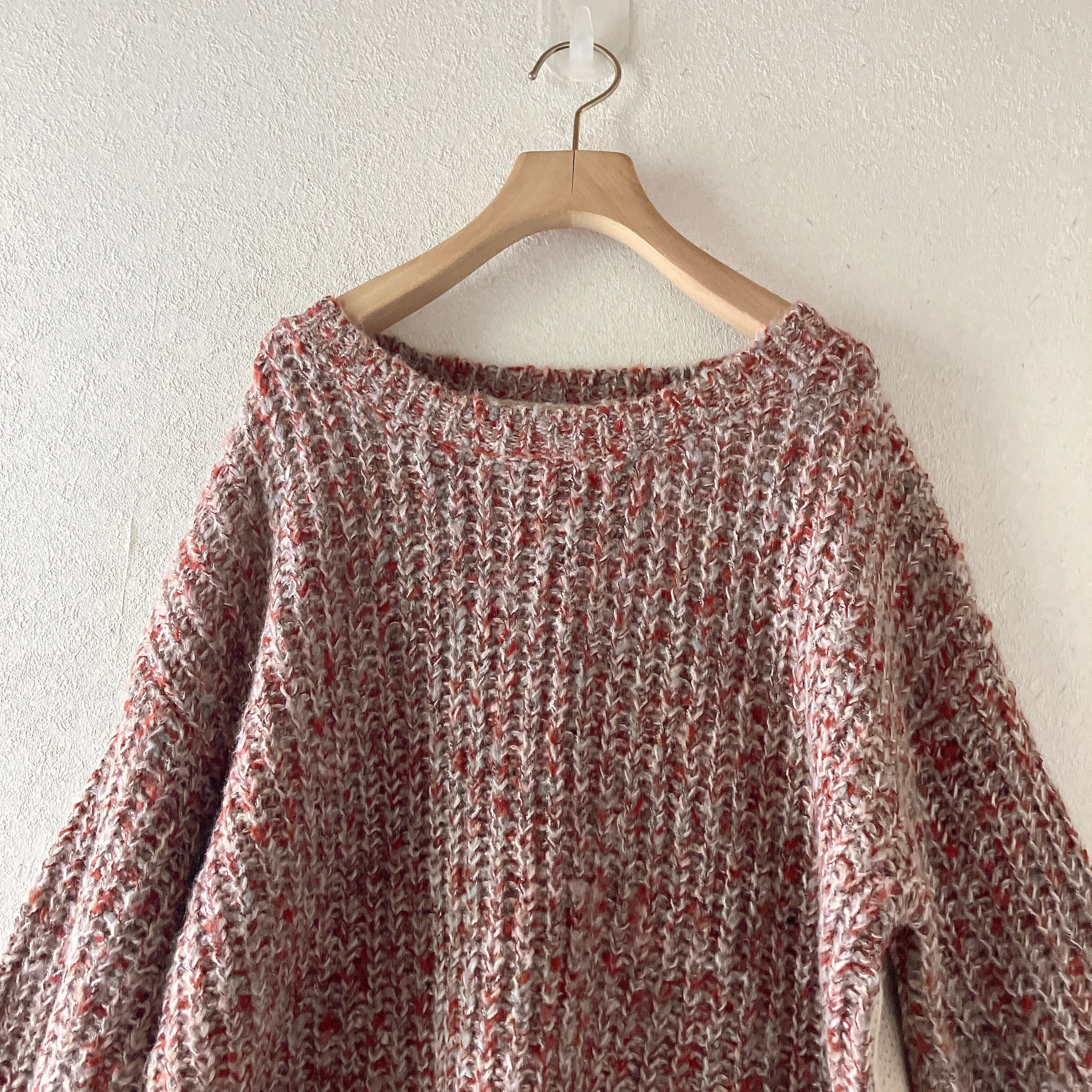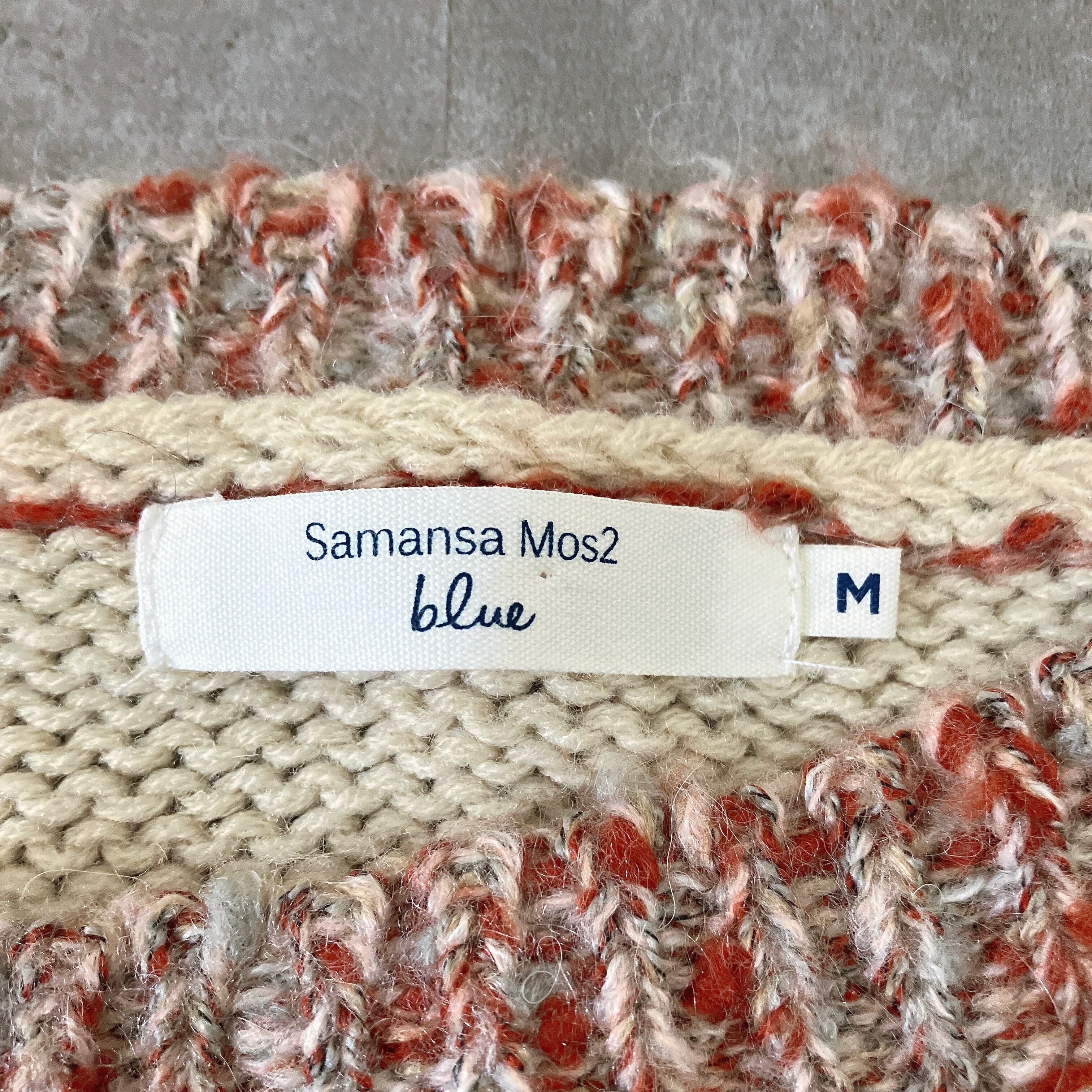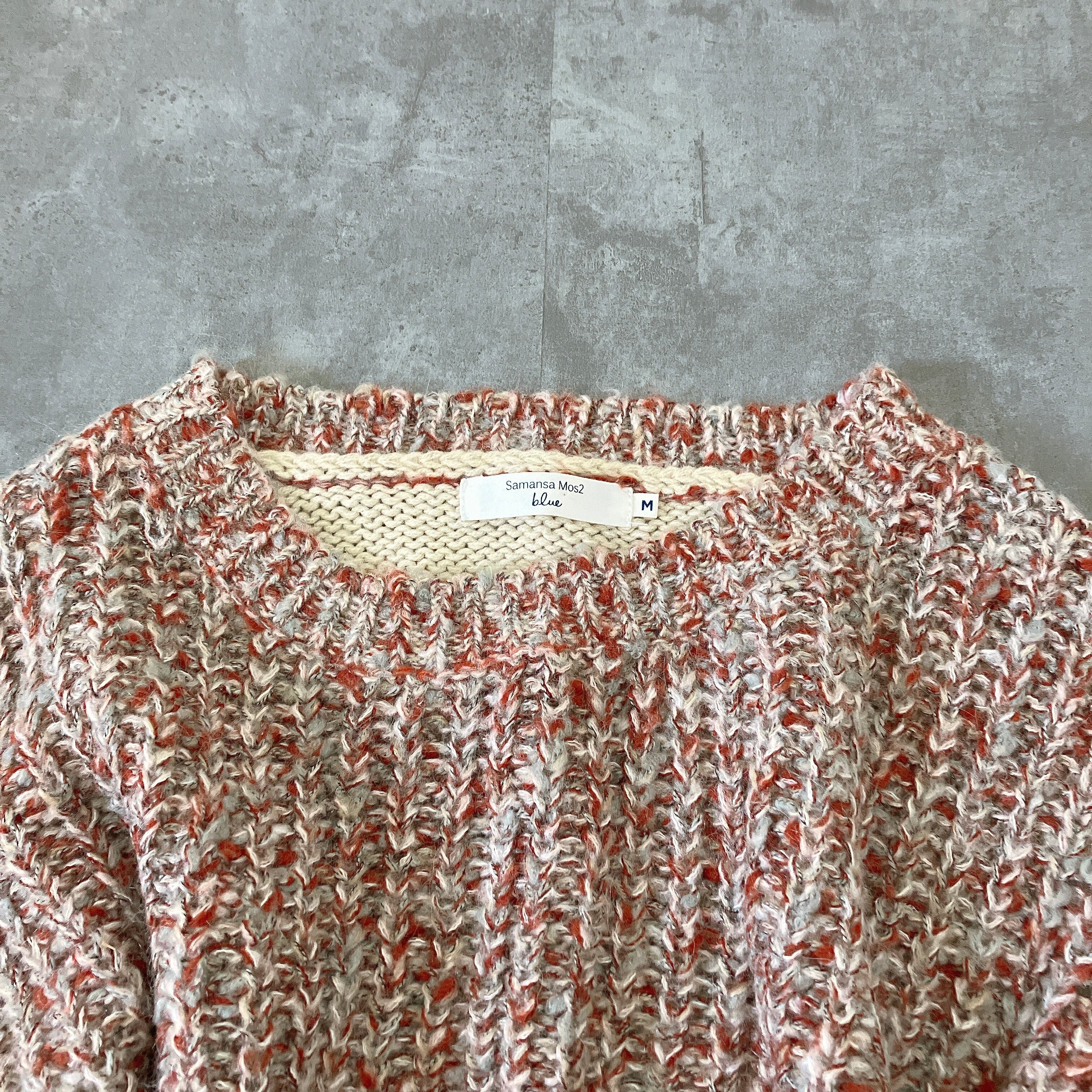 Samansa Mos2 blue サマンサモスモスブルー ニットプルオーバー M ゆったり 赤系ミックス糸 ドロップショルダー アクリル混 ナチュラル ざっくり編み セーター レディース 着丈