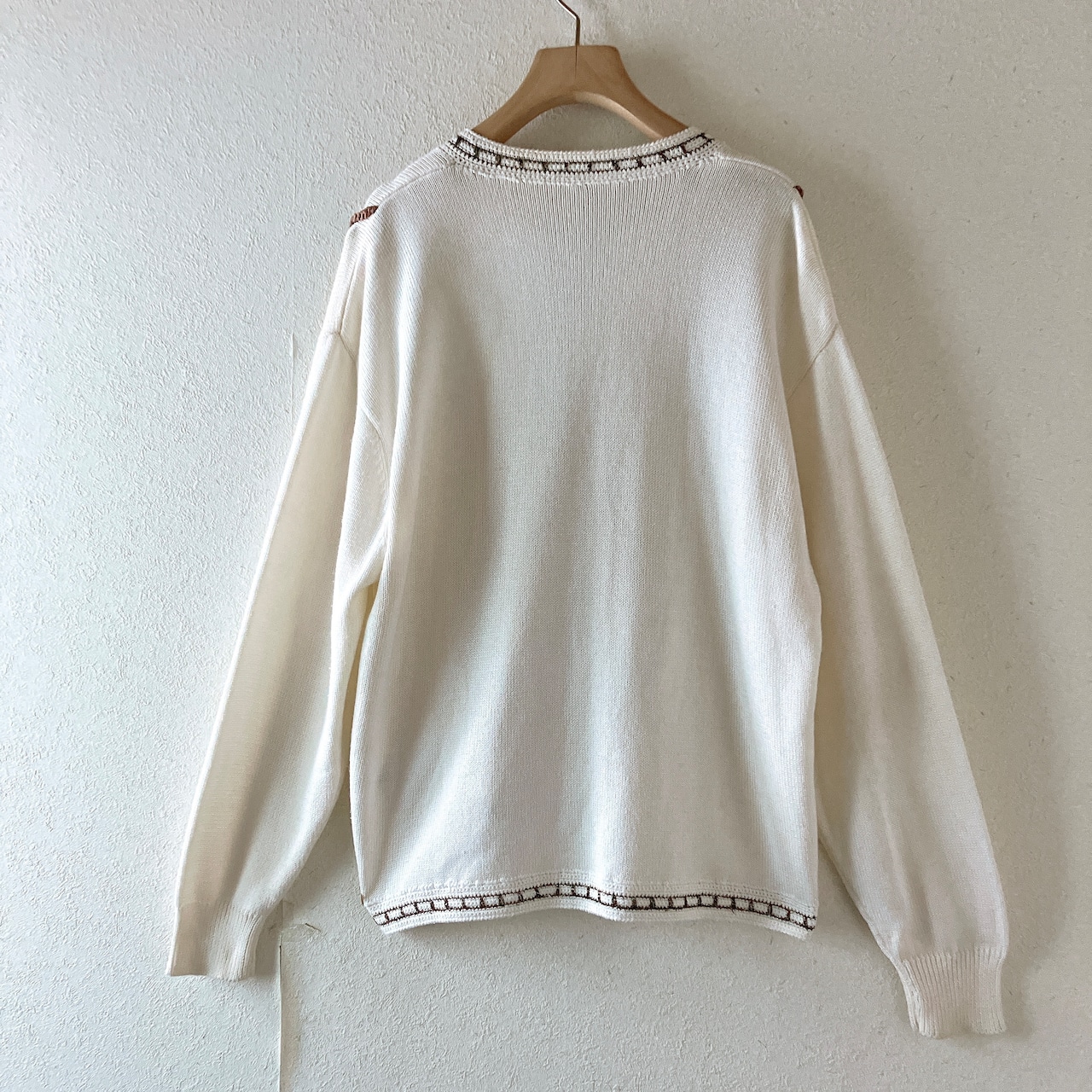 花柄 刺繍 ビジュー カーディガン アイボリー ふんわり可愛い ニット カーデ アクリル 素材 パールボタン 冬コーデ 上品 大人フェミニン ゆったりシルエット きれいめ ナチュラル ガーリー 主役級デザイン 華やか アウター感覚で羽織れる 一枚 | nijiきれいな古着屋さん