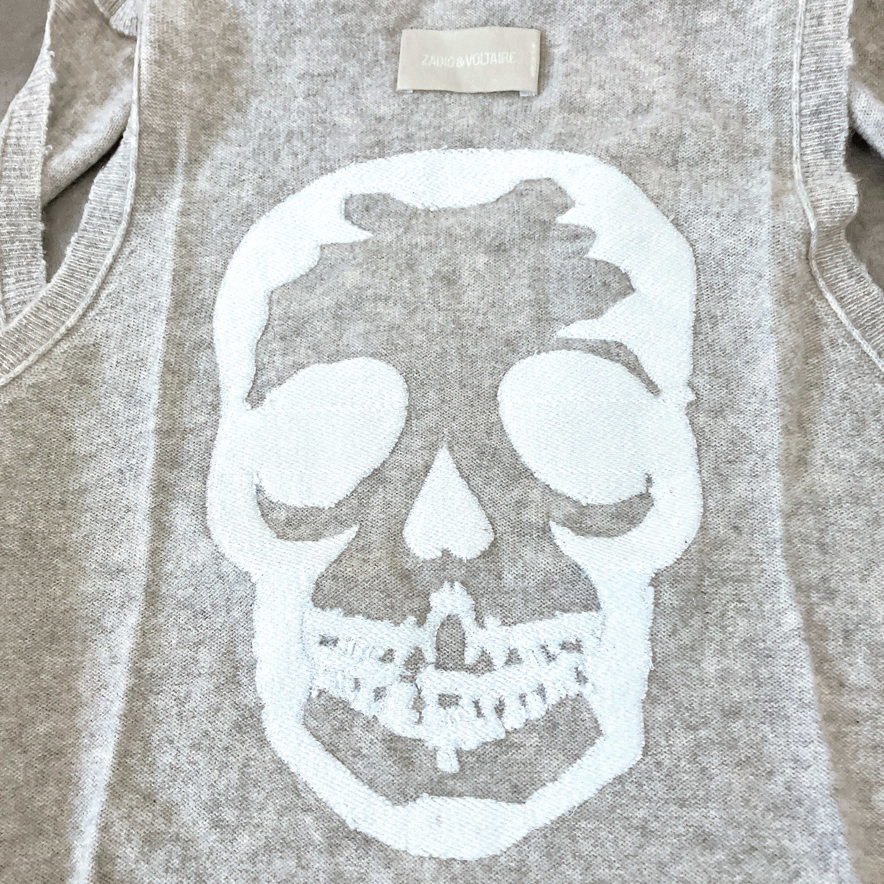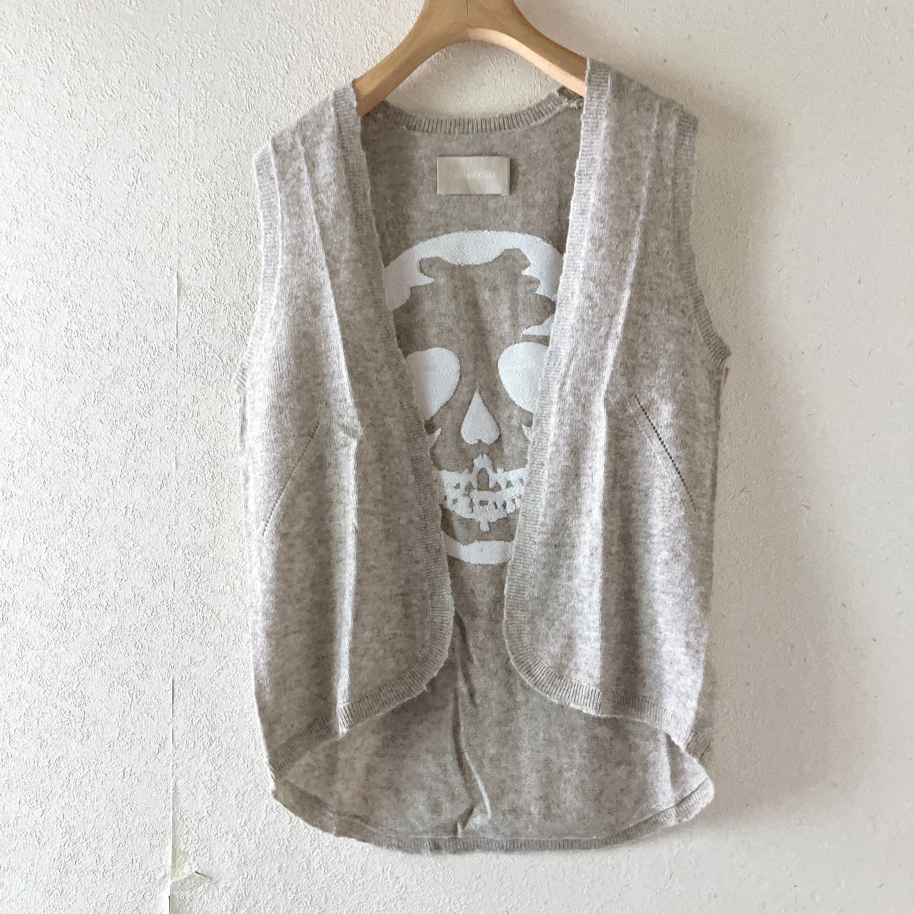 新品未使用 タグ付 ZADIG&VOLTAIRE スカル柄 カシミヤ100% ニットベスト グレー XS ザディグエヴォルテール 前開き レイヤード 上質 大人カジュアル 定価:34,650円