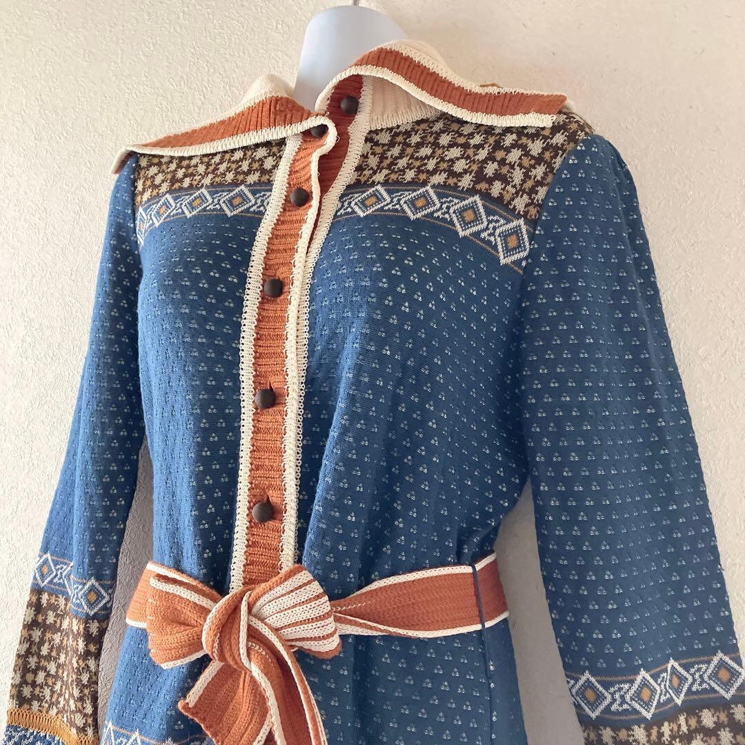 HIROKO BIS ノルディック柄 ロングニットカーディガン フード ベルト