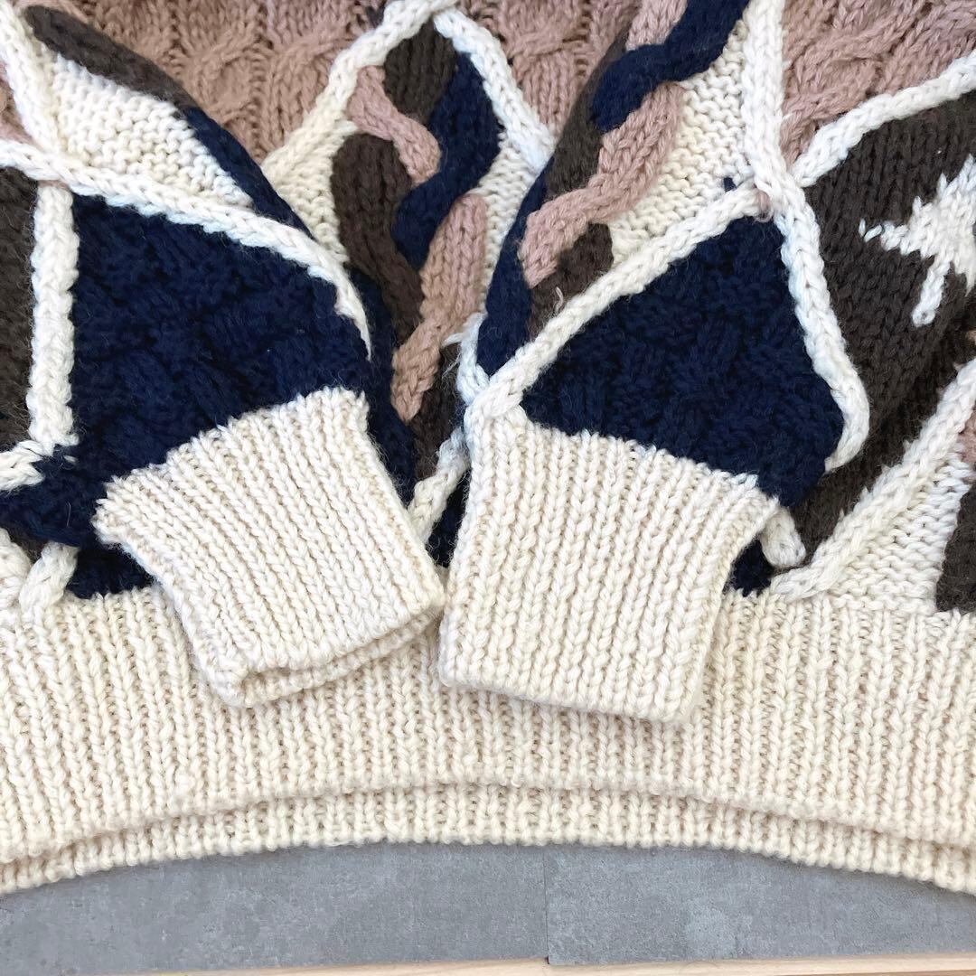 3D立体編み アーガイル ニット 個性派 ゆるだぼ ウール100