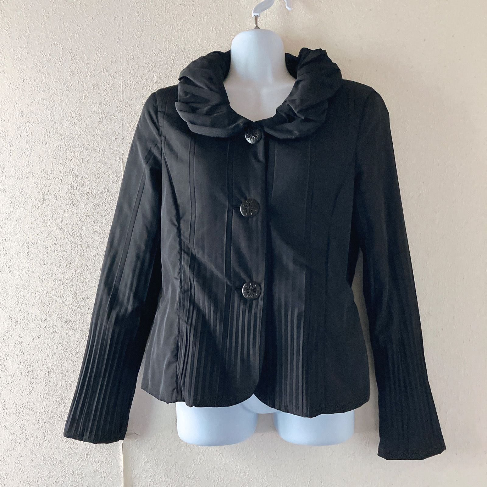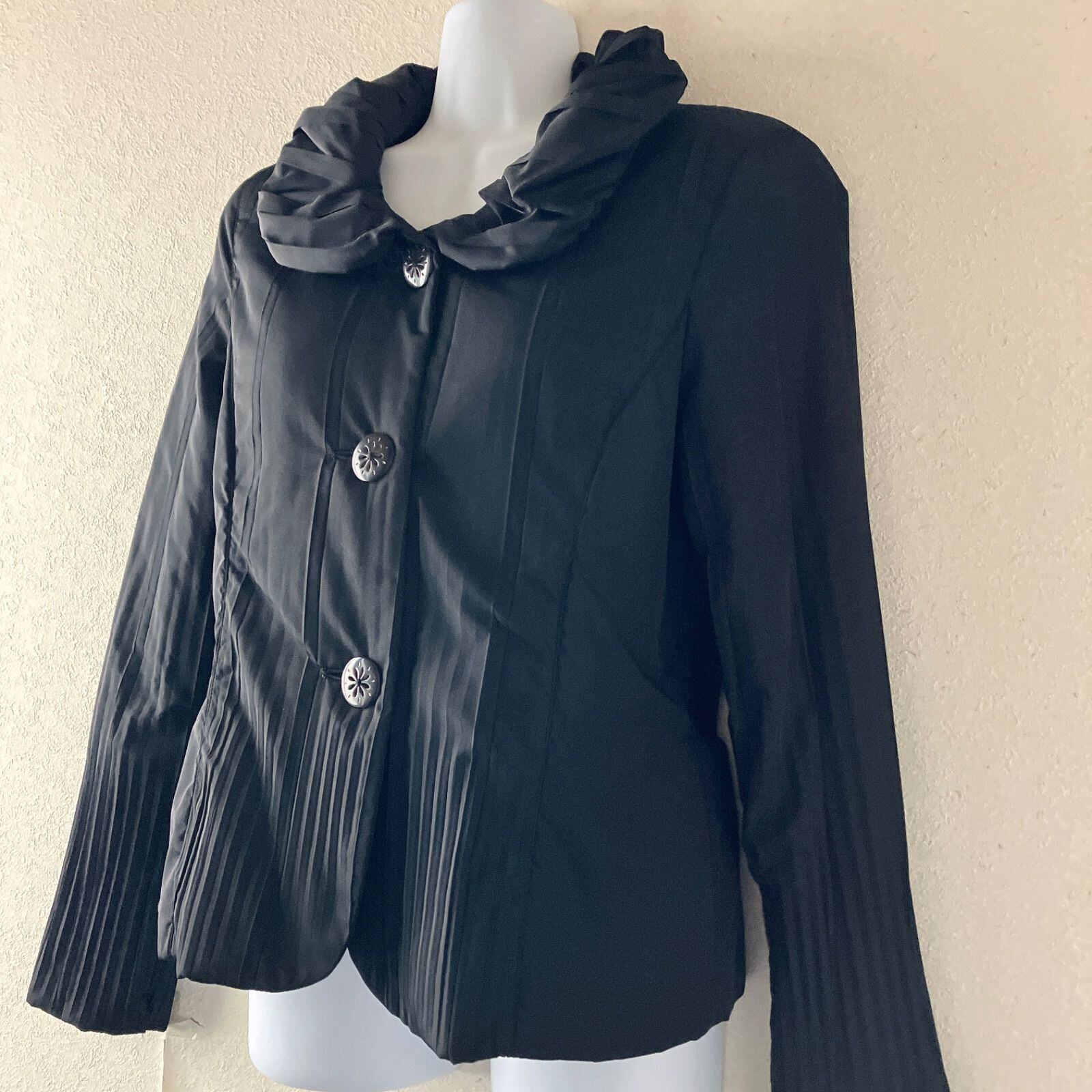 HIROKO KOSHINO コシノヒロコ 立体襟 デザインジャケット 黒 プリーツ袖 モード 日本ブランド 38 レディース ブラック