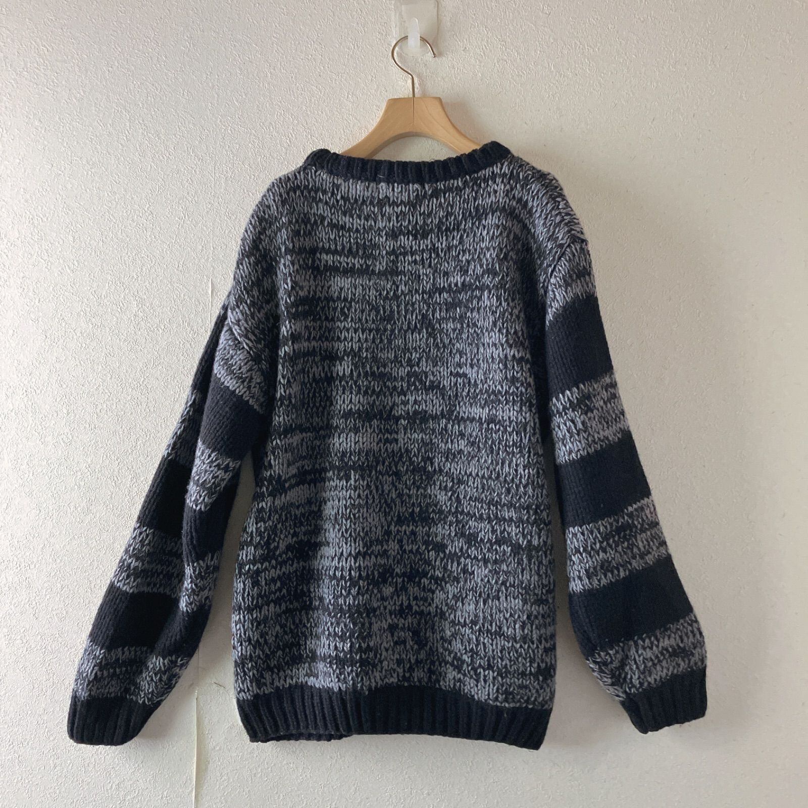 SNOOPY スヌーピー ニット セーター メンズL相当 モノトーン ざっくり編み 大柄キャラクター柄 ゆるだぼ 古着 90s風 可愛い 暖かい 冬コーデ ユニセックス