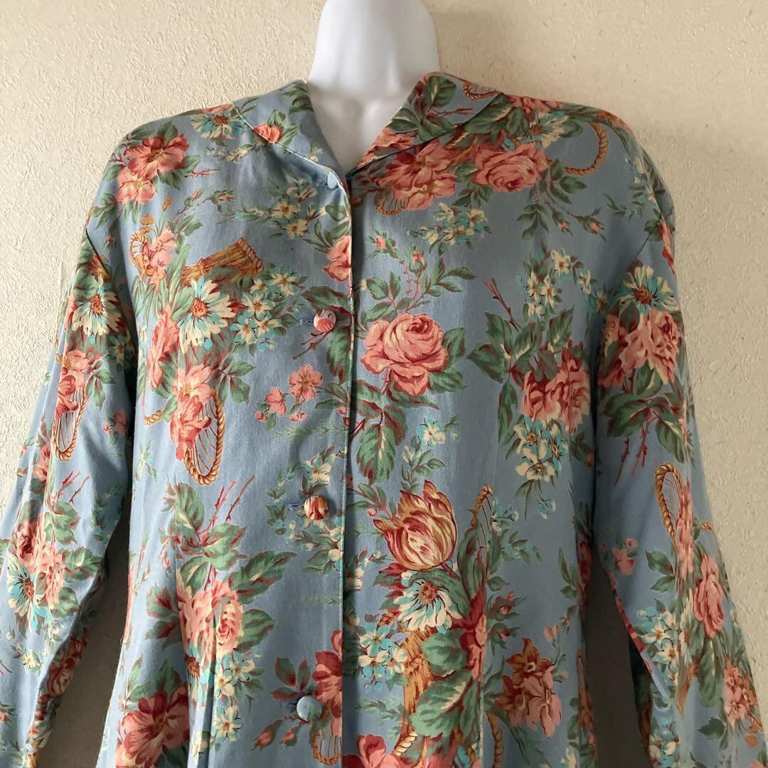 くすみブルーをベースにしたクラシカルな花柄が印象的で、落ち着いた大人の雰囲気。