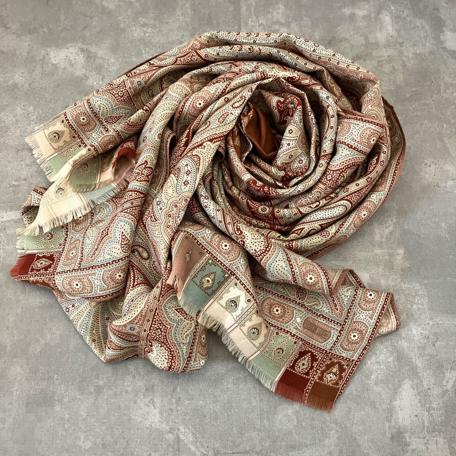 ETRO エトロ ペイズリー柄 大判ストール ウール シルク イタリア製 ショール スカーフ 総柄 オリエンタル 上質素材 高級感 羽織り