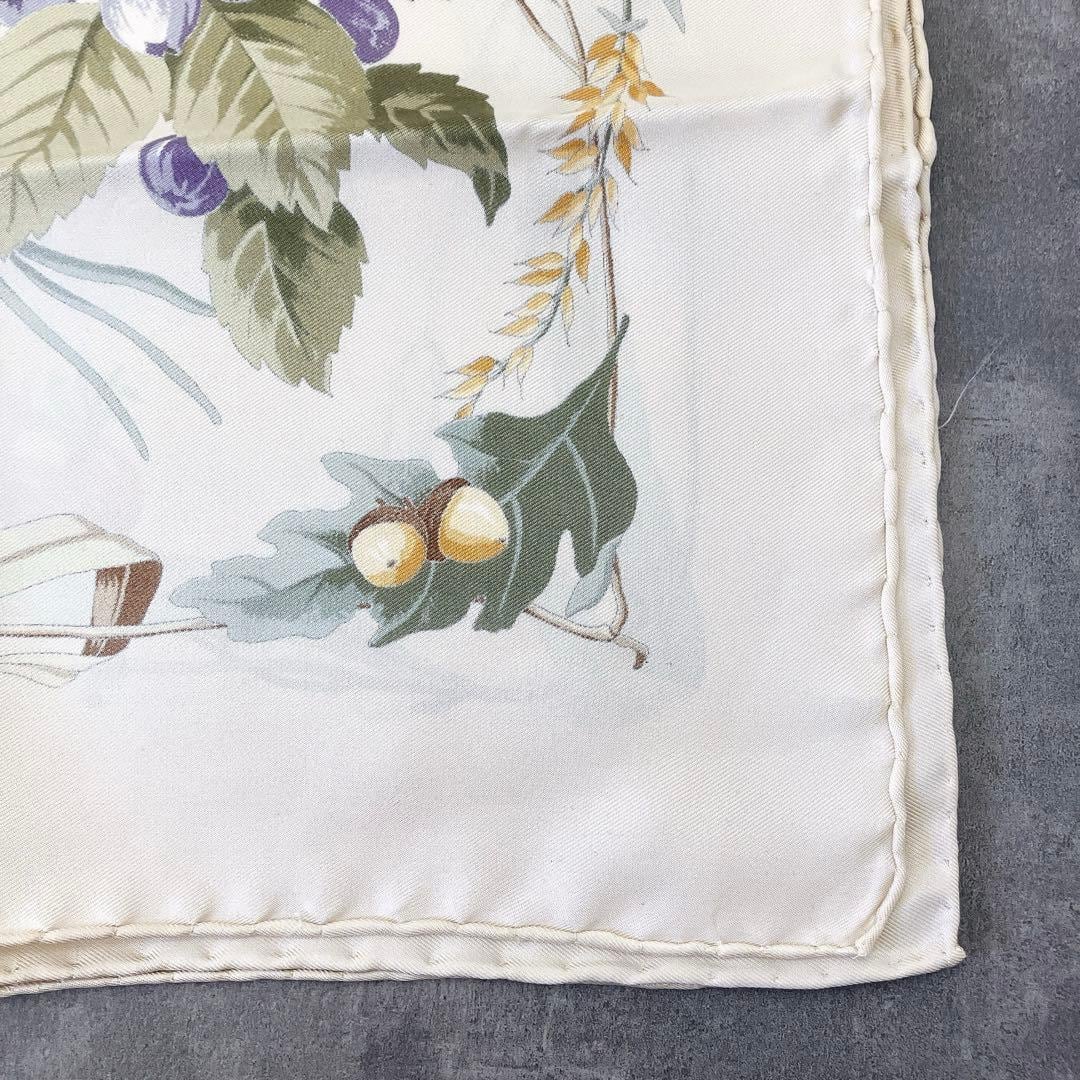 本品は、一般的なフローラに見られる昆虫(蝶や蜂)が描かれていない、非常に珍しい**「植物特化型」のアーカイブデザイン**です。どんぐり、松ぼっくり、スノードロップなど、秋冬の植物を中心に構成された落ち着きのある配色は、どんな装いにも気品を添えてくれます。