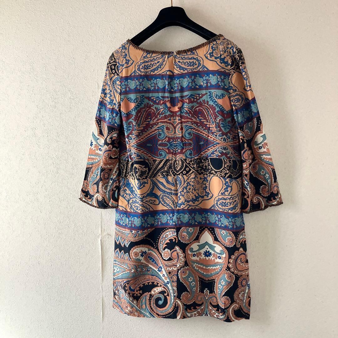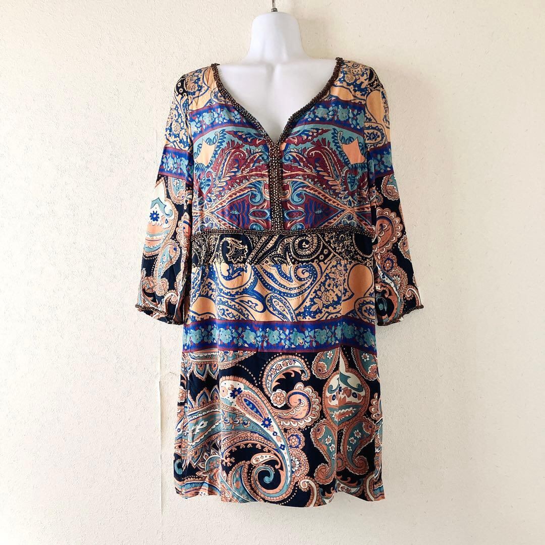 Diagram シルク100% チュニック ワンピース ペイズリー ビジュー
