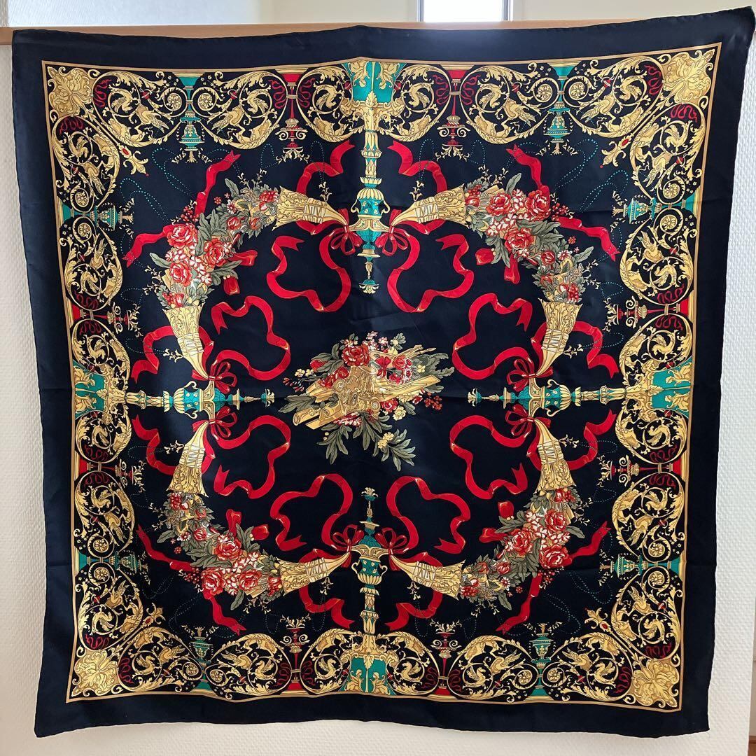 ヨーロピアン 紋章&フラワーデザイン 大判スカーフ