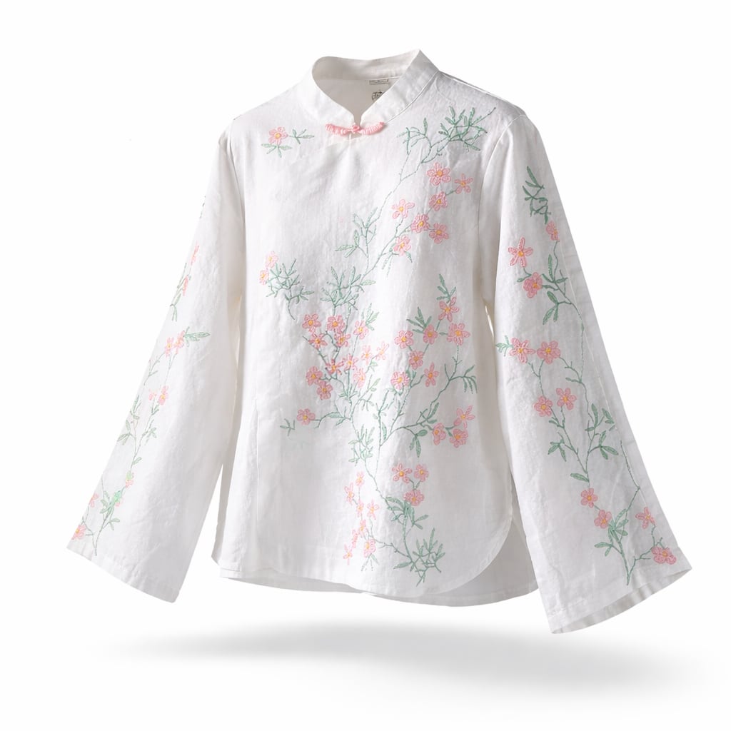 FASHONの花柄刺繍チャイナシャツ、カンフーシャツ、ブラウスです。