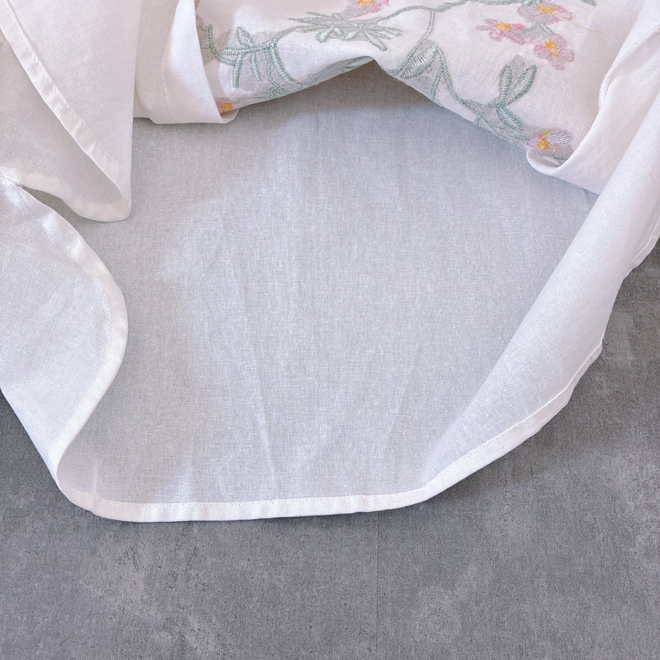 繊細なフラワー刺繍が全体に施された、ナチュラルで上品な一着。