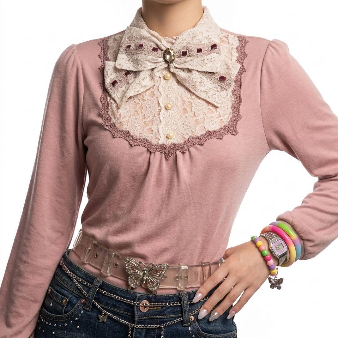 y2k axes femmeレースリボン デカ襟カットソー フェアリーグランジ 地雷系 量産系 平成レトロ「