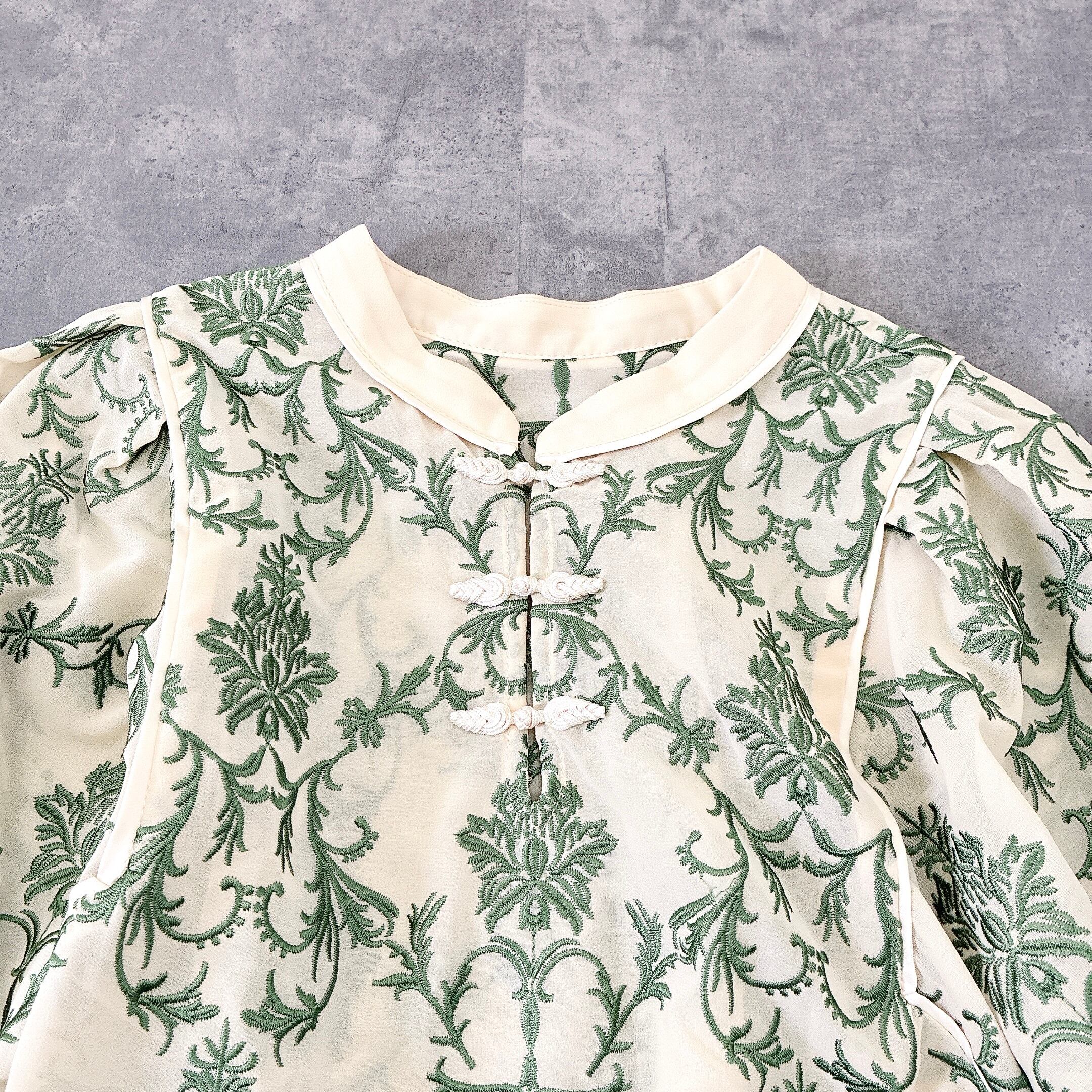リリーブラウンのオリエンタル刺繍チャイナトップスです。