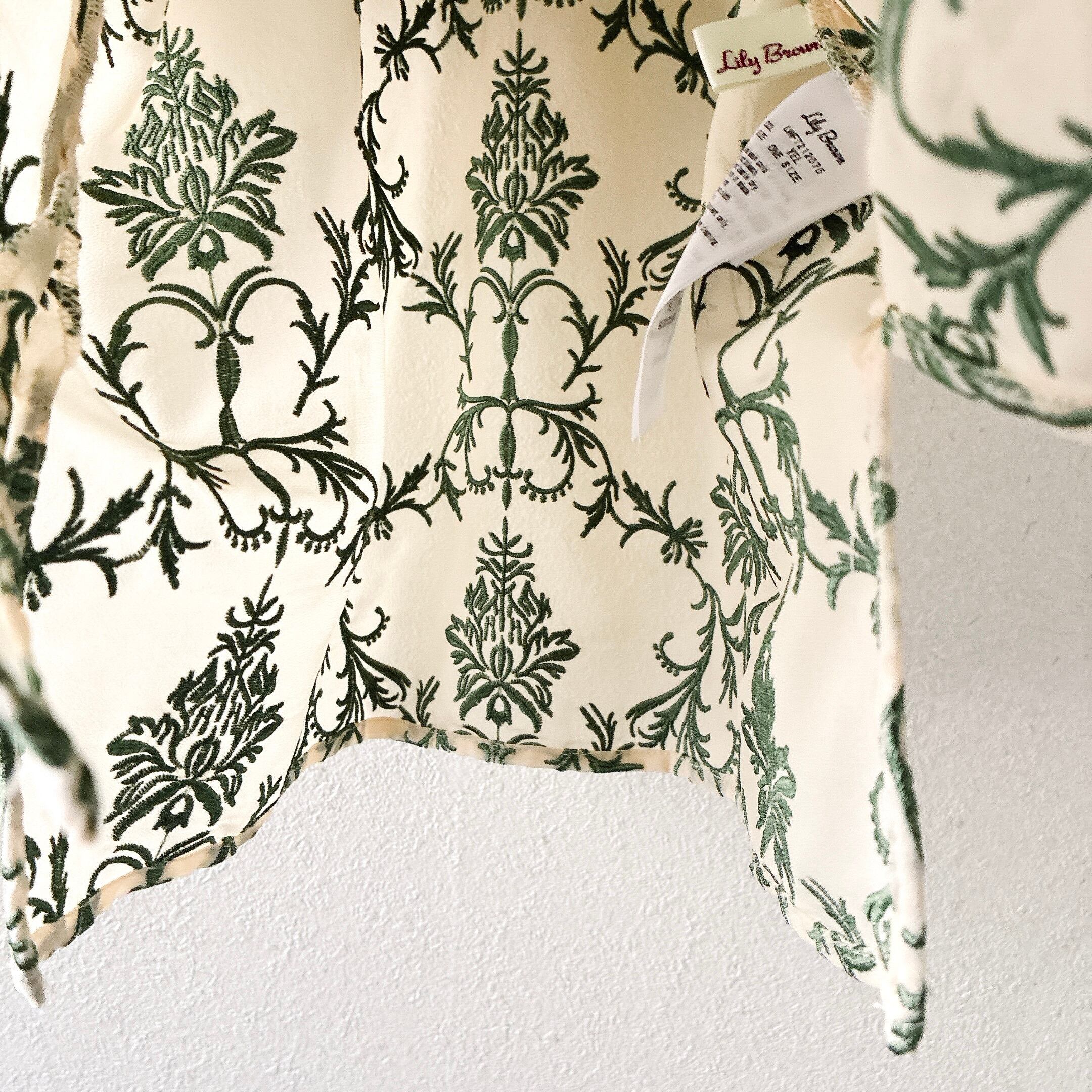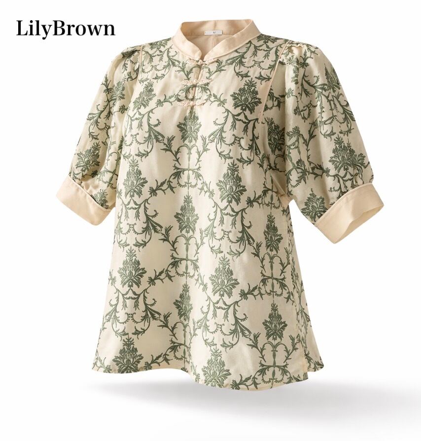 リリーブラウン Lily Brown オリエンタル刺繍チャイナトップス 半袖 花柄 ジャガード風 刺繍ブラウス アイボリー グリーン 上品 高級感 個性派 大人可愛い 春夏 レディース