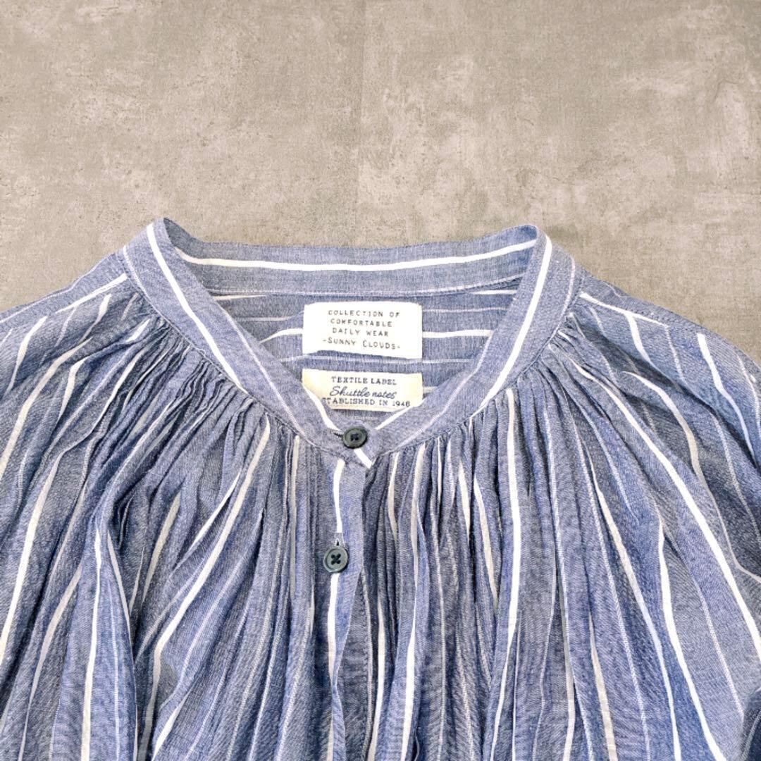 サニークラウズ シャトルノーツ コラボ リネン混 ストライプ柄 ブラウス ボリューム袖 フェリシモ リラックスコーデ L T