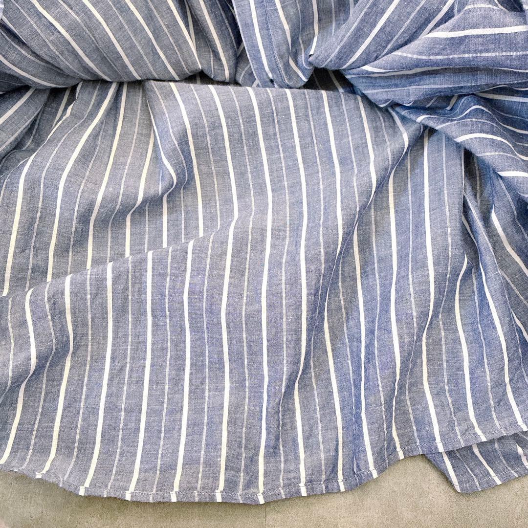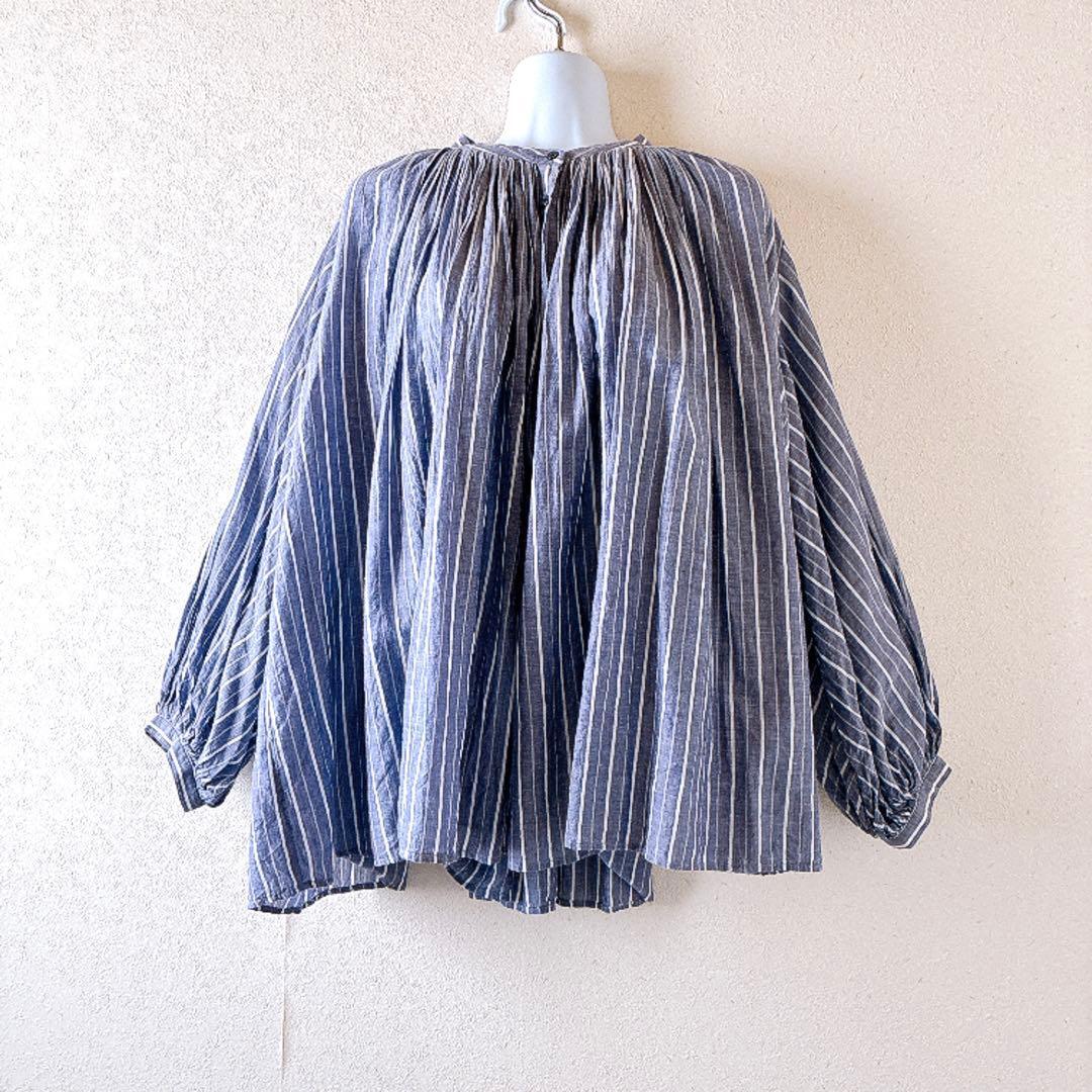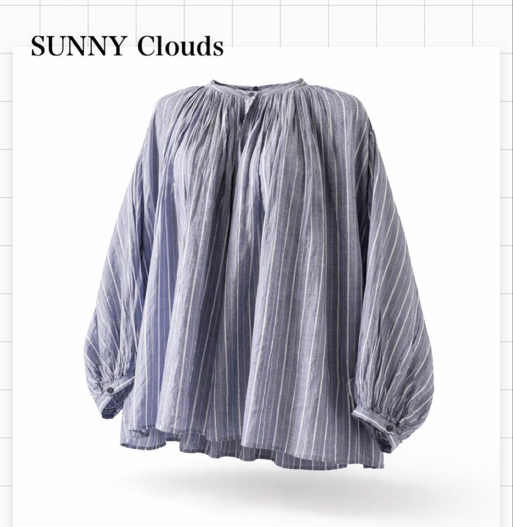 Sunny clouds×シャトルノーツのコラボアイテム、コットンリネンブラウスです。軽やかなコットンリネン素材で通気性が良く、ナチュラルな風合いが魅力。身幅が非常に広く、着るとポンチョのようなふんわりとしたふ大人可愛いシルエットになります。ボリューム袖とストライプ柄が抜け感を演出し、1枚で雰囲気の出るデザインです。
