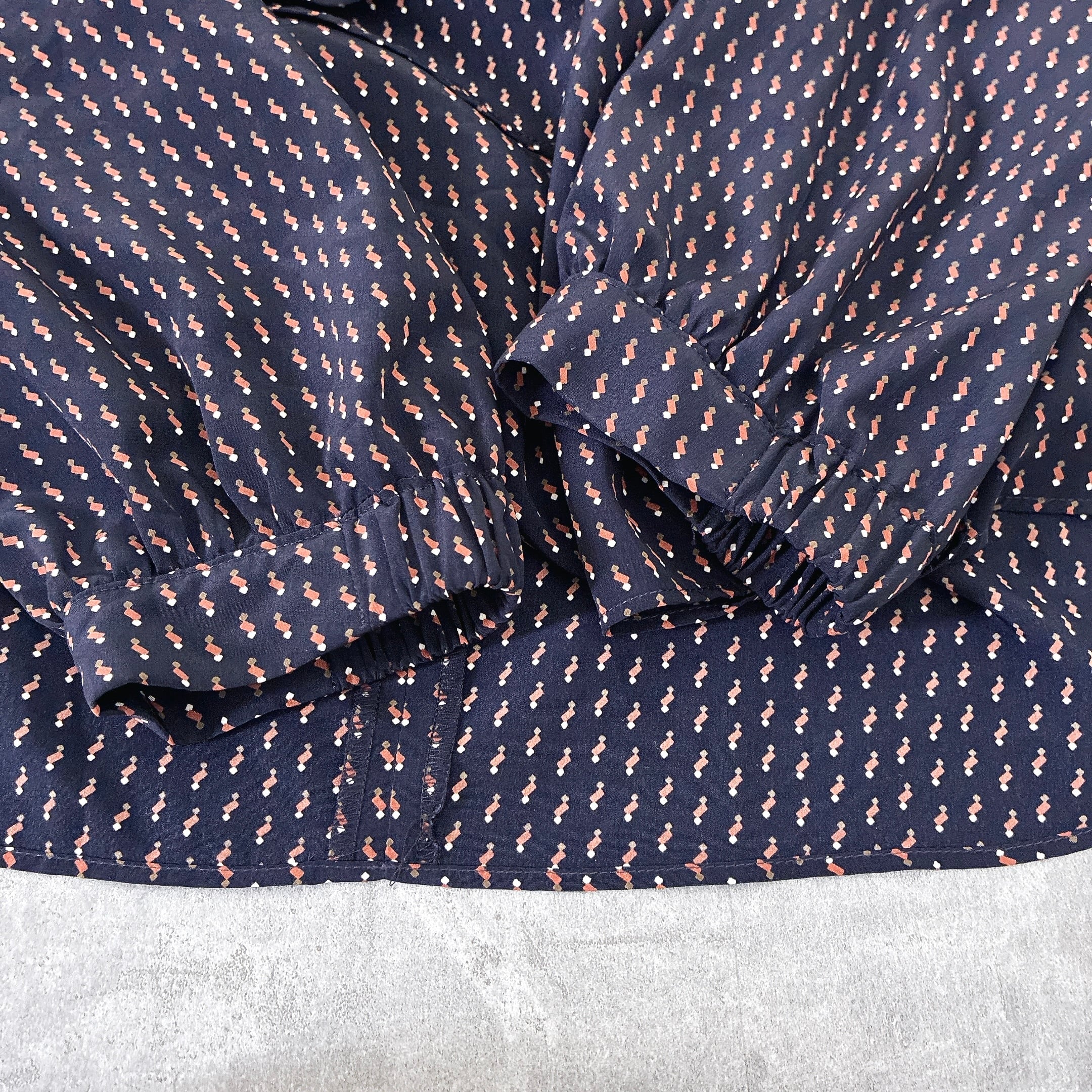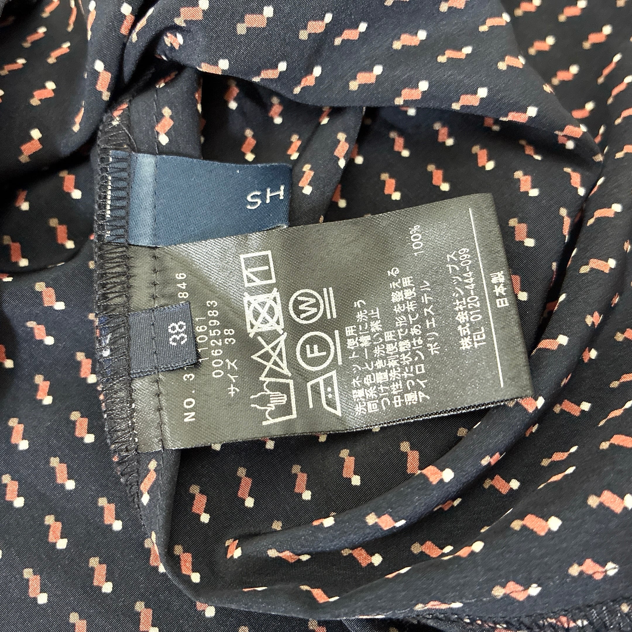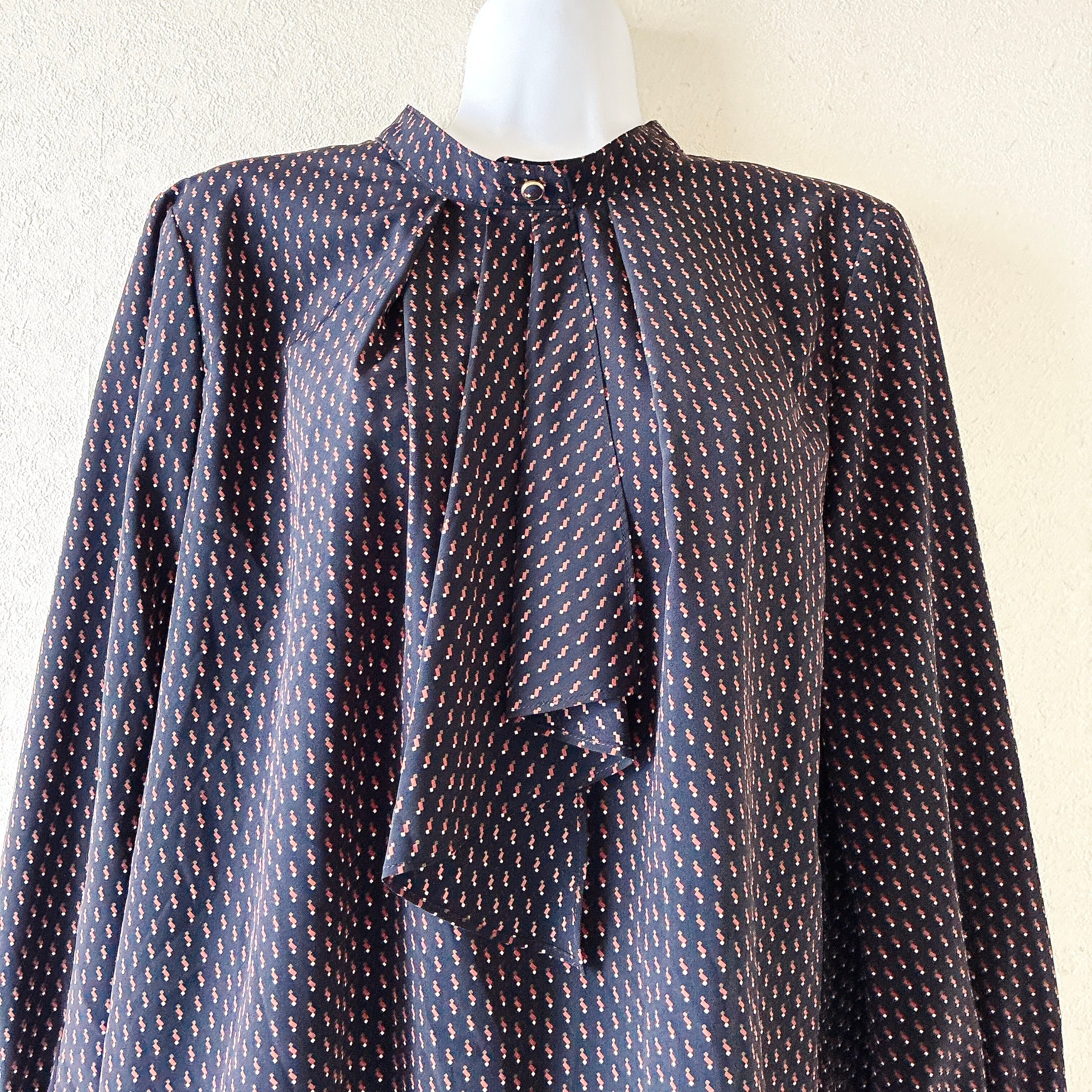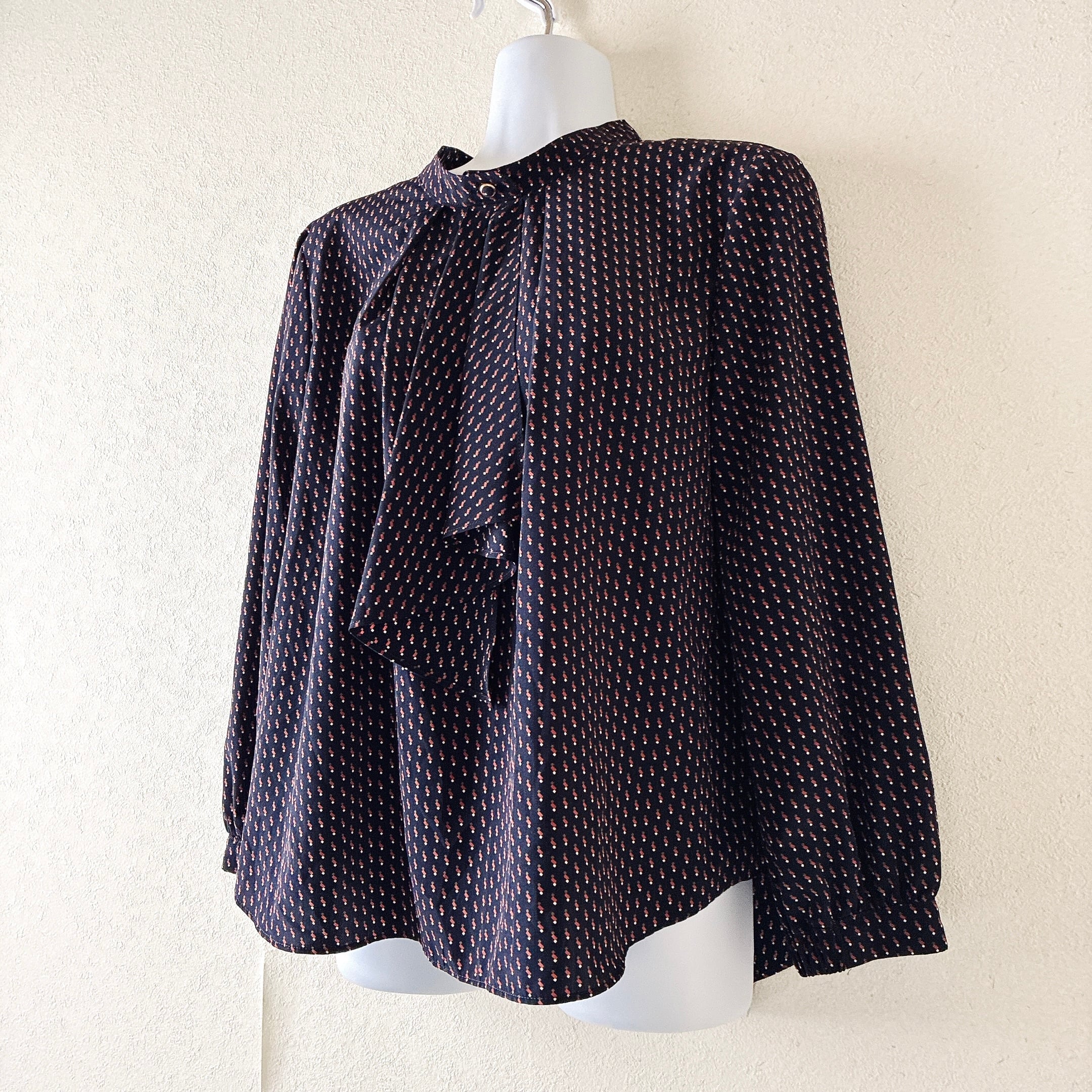 シップス SHIPS ボウタイブラウス ネイビー 小紋柄 上品 とろみ素材 長袖 レディース きれいめ オフィス フェミニン 通勤 春秋 日本製風デザイン 落ち感あり 上質 大人コーデ