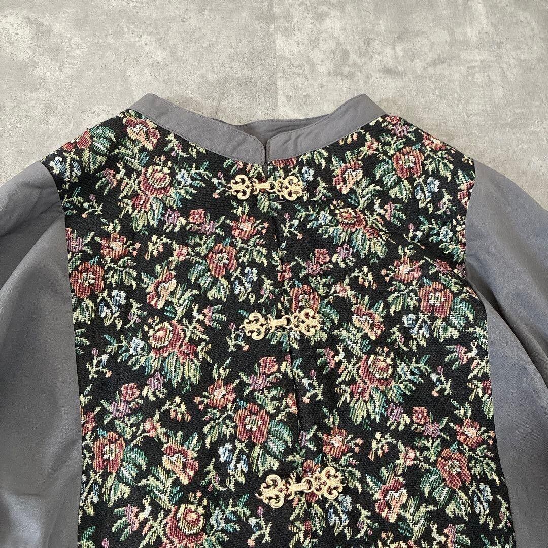 kutir ゴブランレトロチャイナワンピース 花柄 刺繍入り ロングワンピース