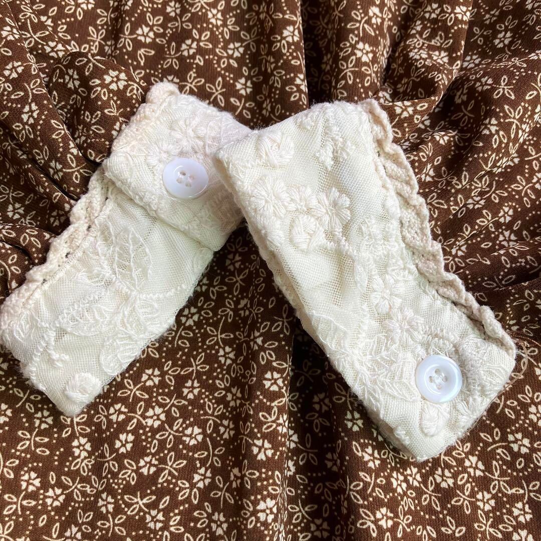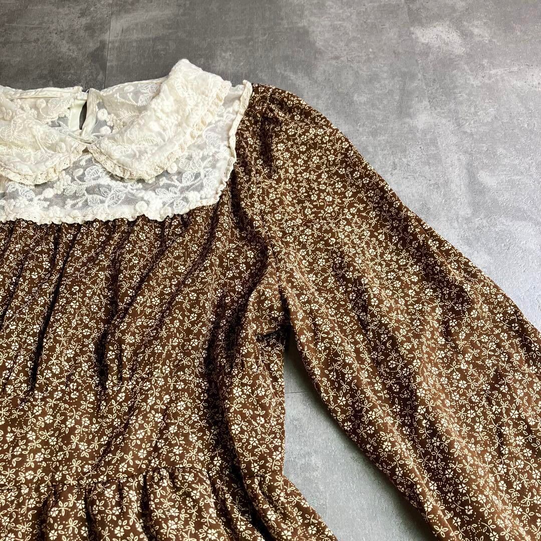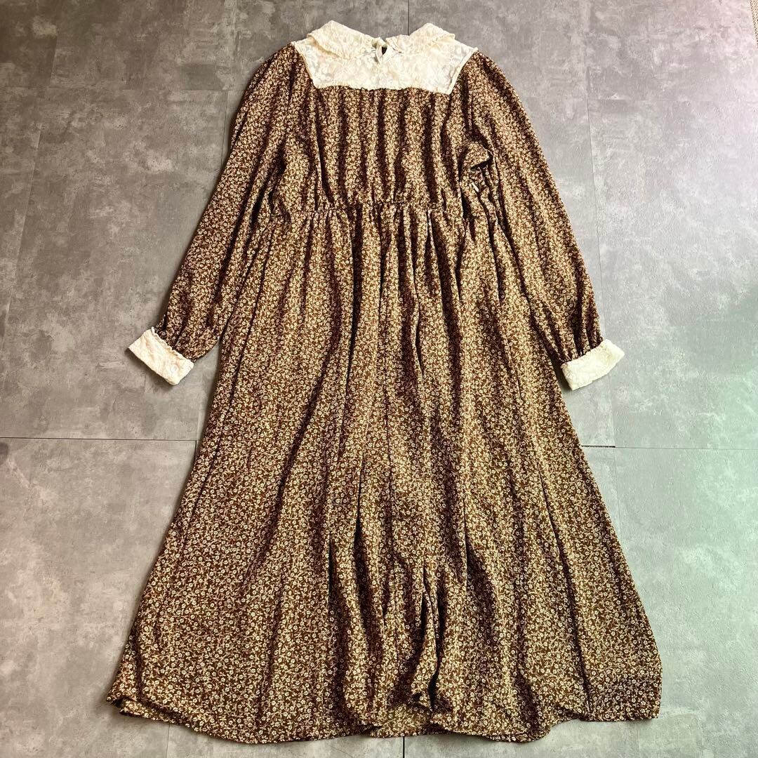 クリシェドゥパリス clice de paris パラビオン 小花柄 長袖 ロング ワンピース 花柄レース 襟 レトロ系 茶