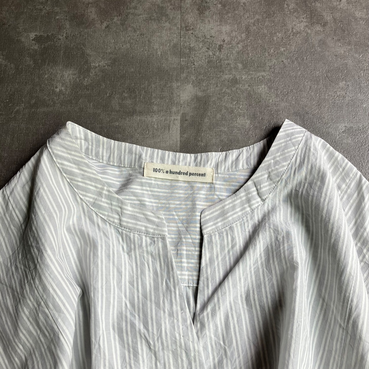 100% a hundredpercent ハンドレッドパーセント マークアンドプラス +2 半袖 ブラウス ストライプ コットンシルク グレー系
