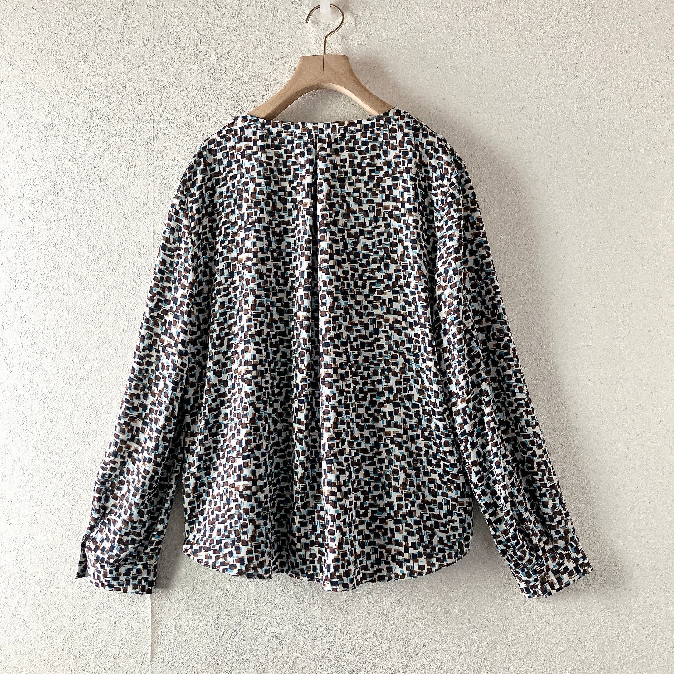 アンタイトル UNTITLED 総柄 長袖 ブラウス シャツ タック オフィスカジュアル 2 M