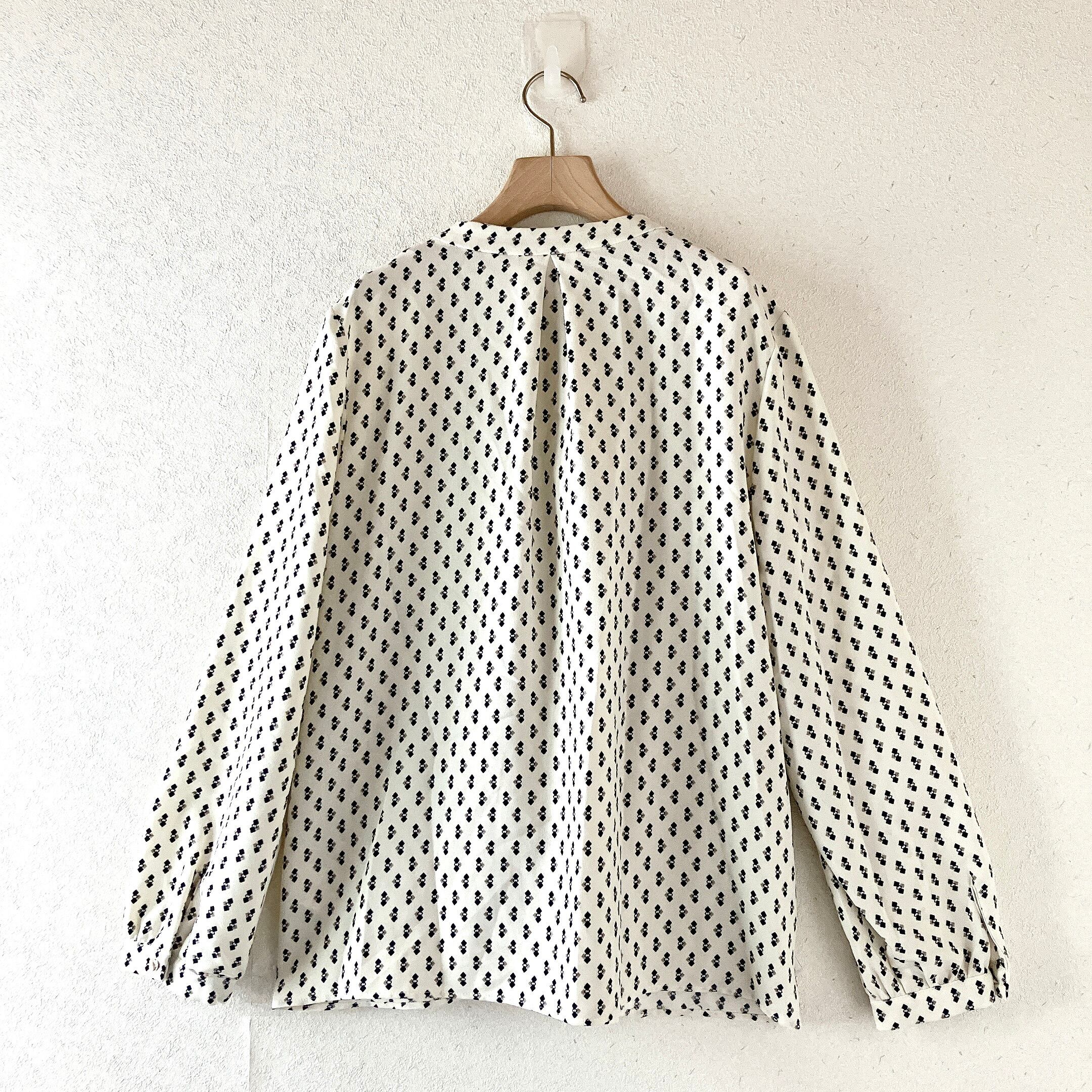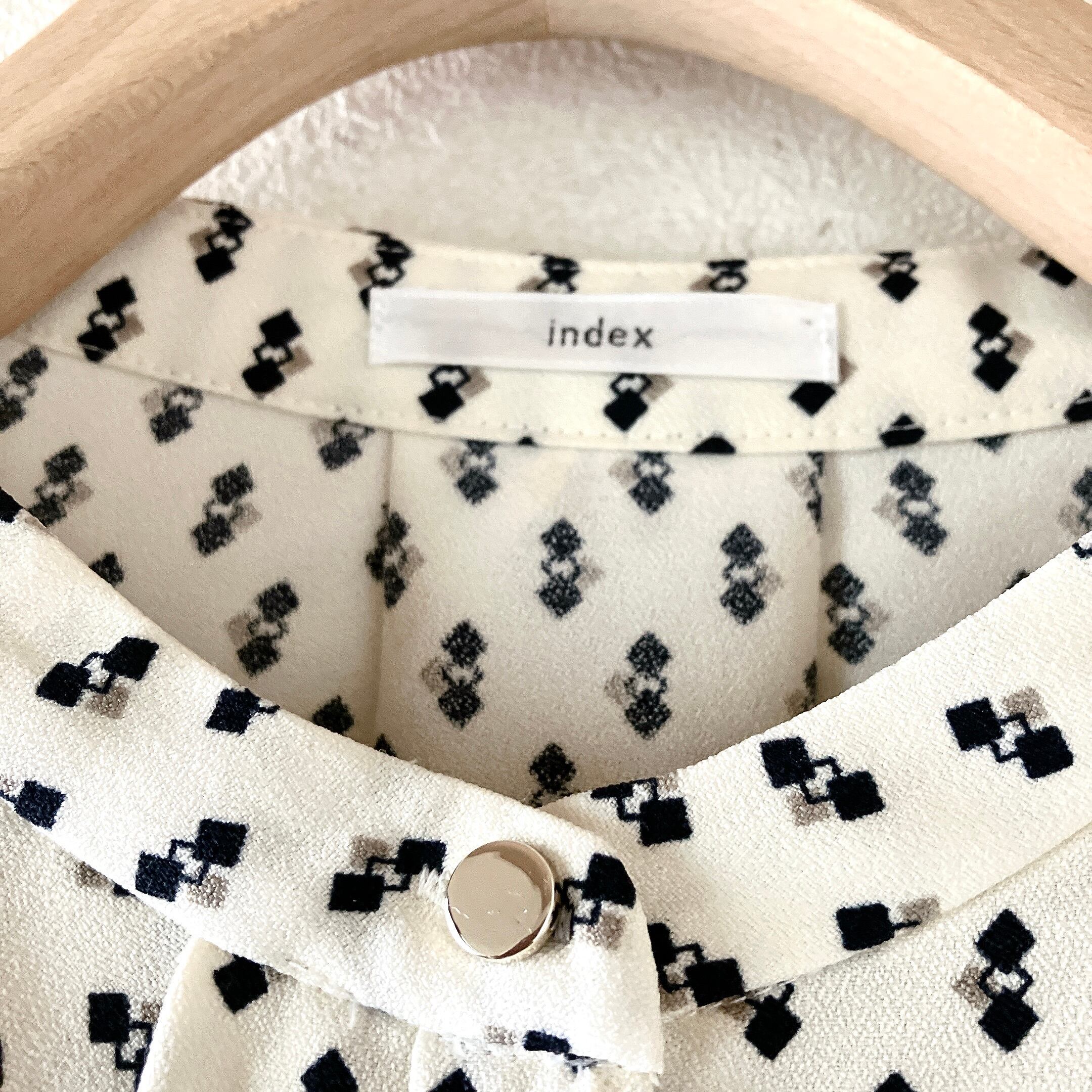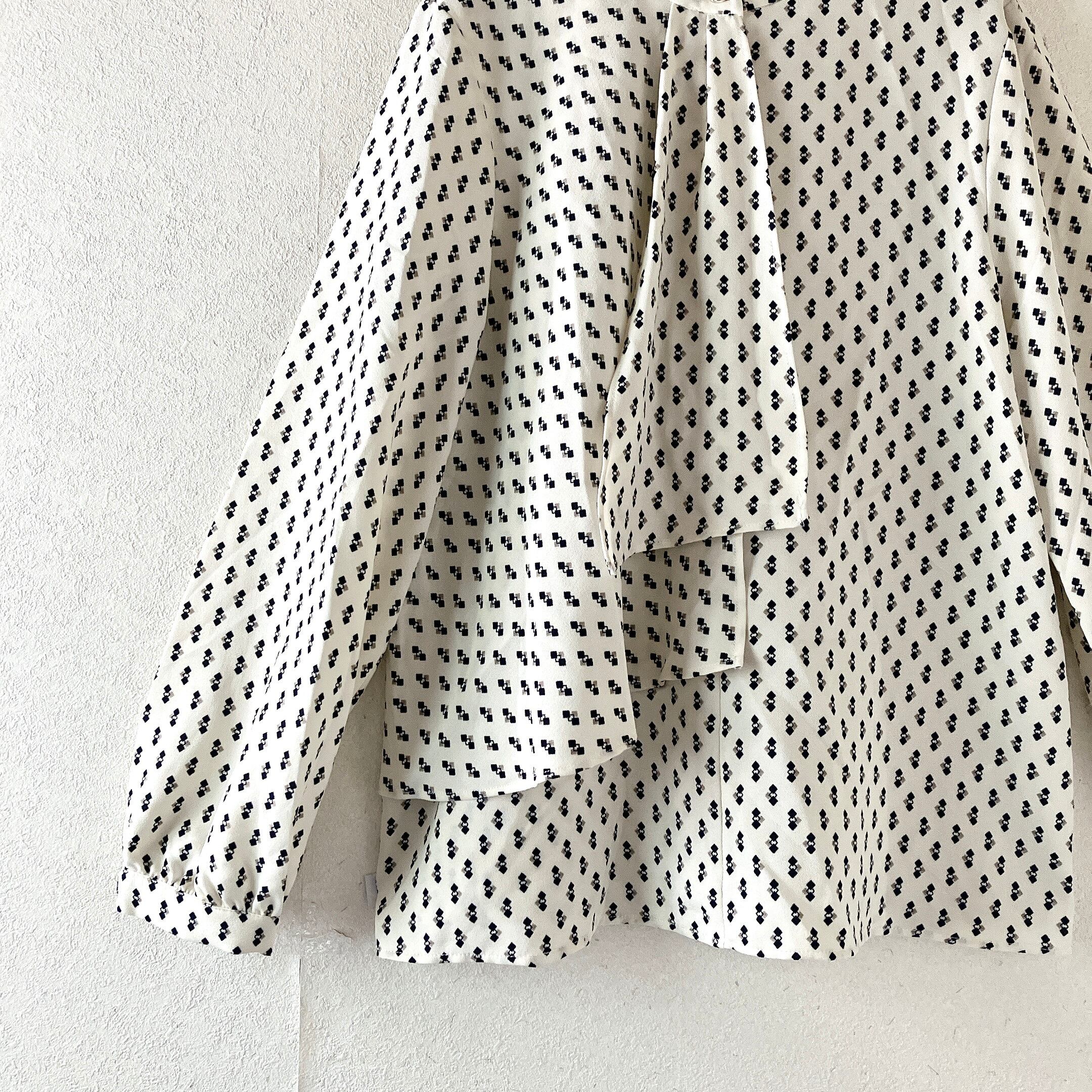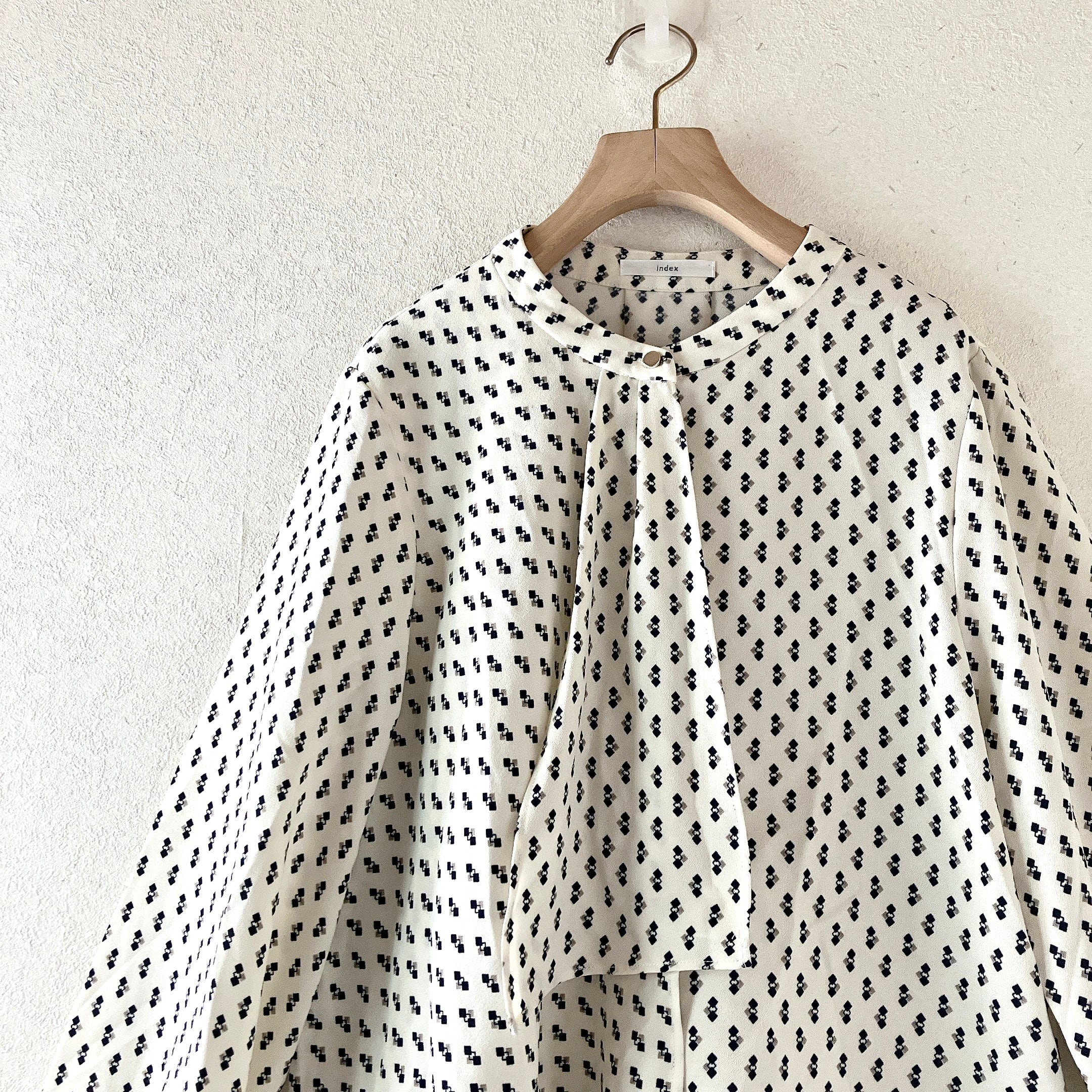 インデックス index ボウタイ 長袖 ブラウス シャツ 総柄 白 ビジネス L
