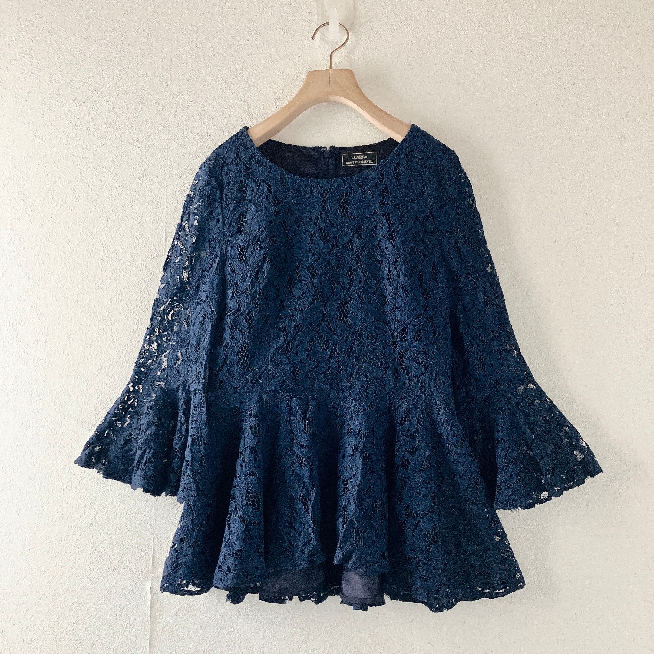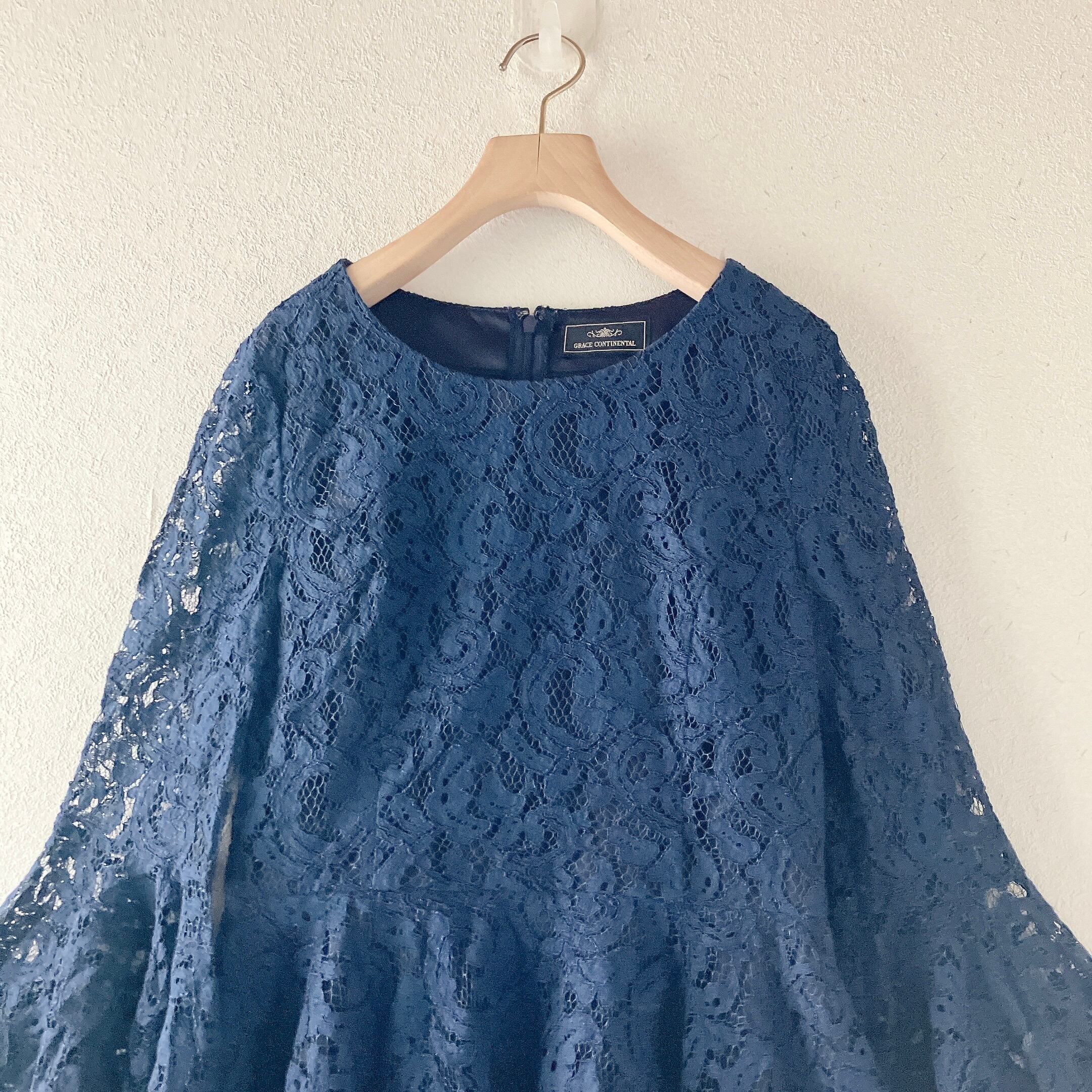 グレースコンチネンタル 花柄 総レース 袖フレア 刺繍 ペプラム 長袖 ブラウス トップス 36 S相当