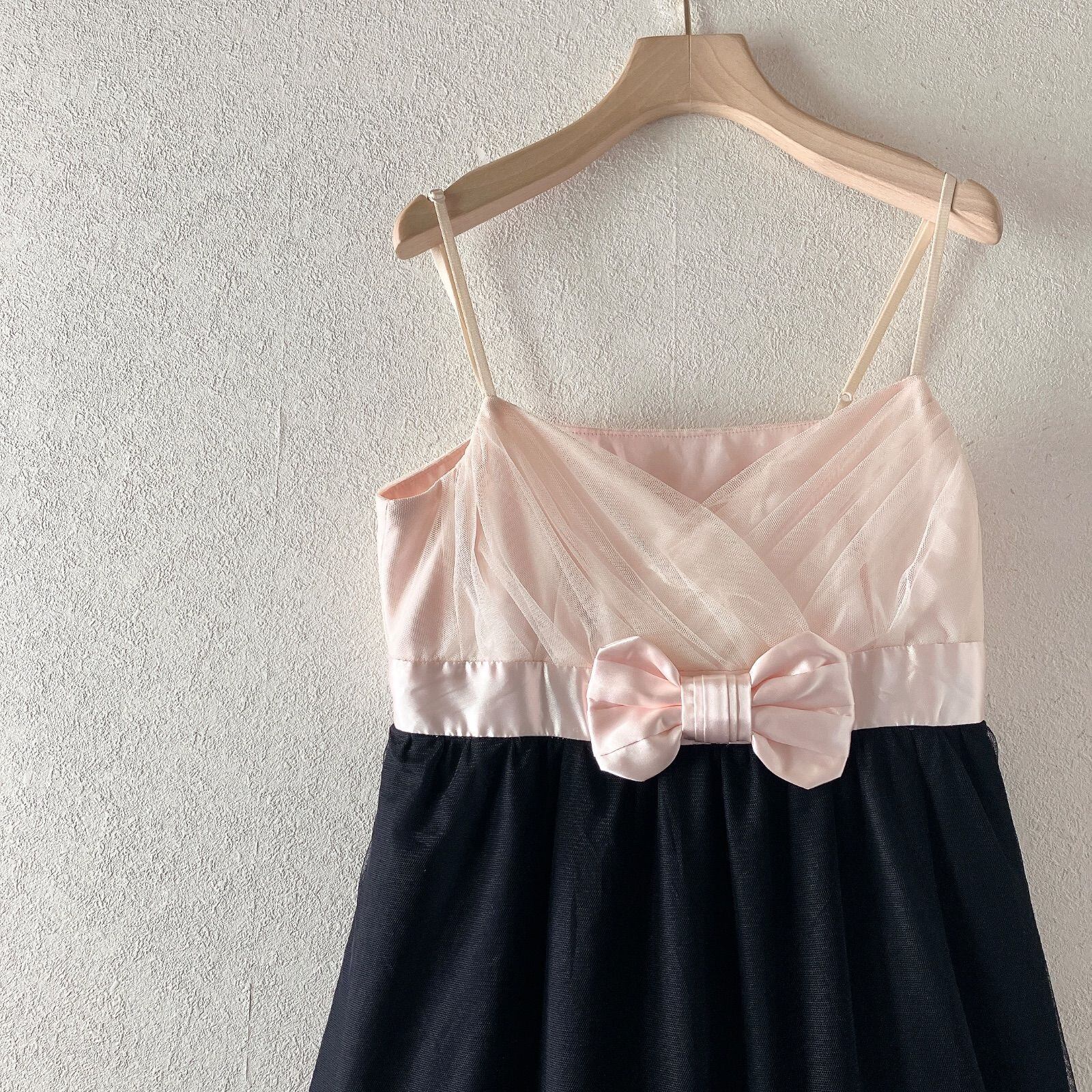 Y2K フェアリーグランジ fairygrunge 姫系 姫ギャル リボン キャミソール ワンピース バレエコア M ブラック 黒 00s