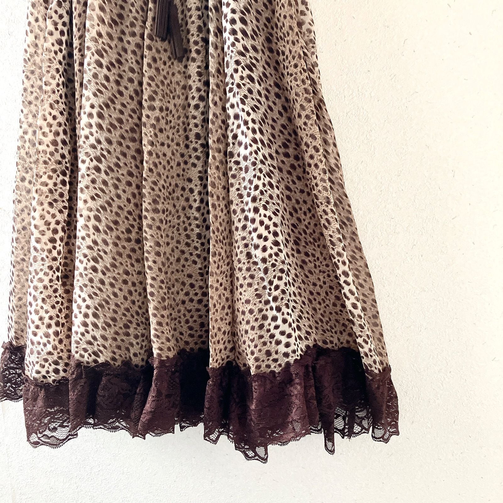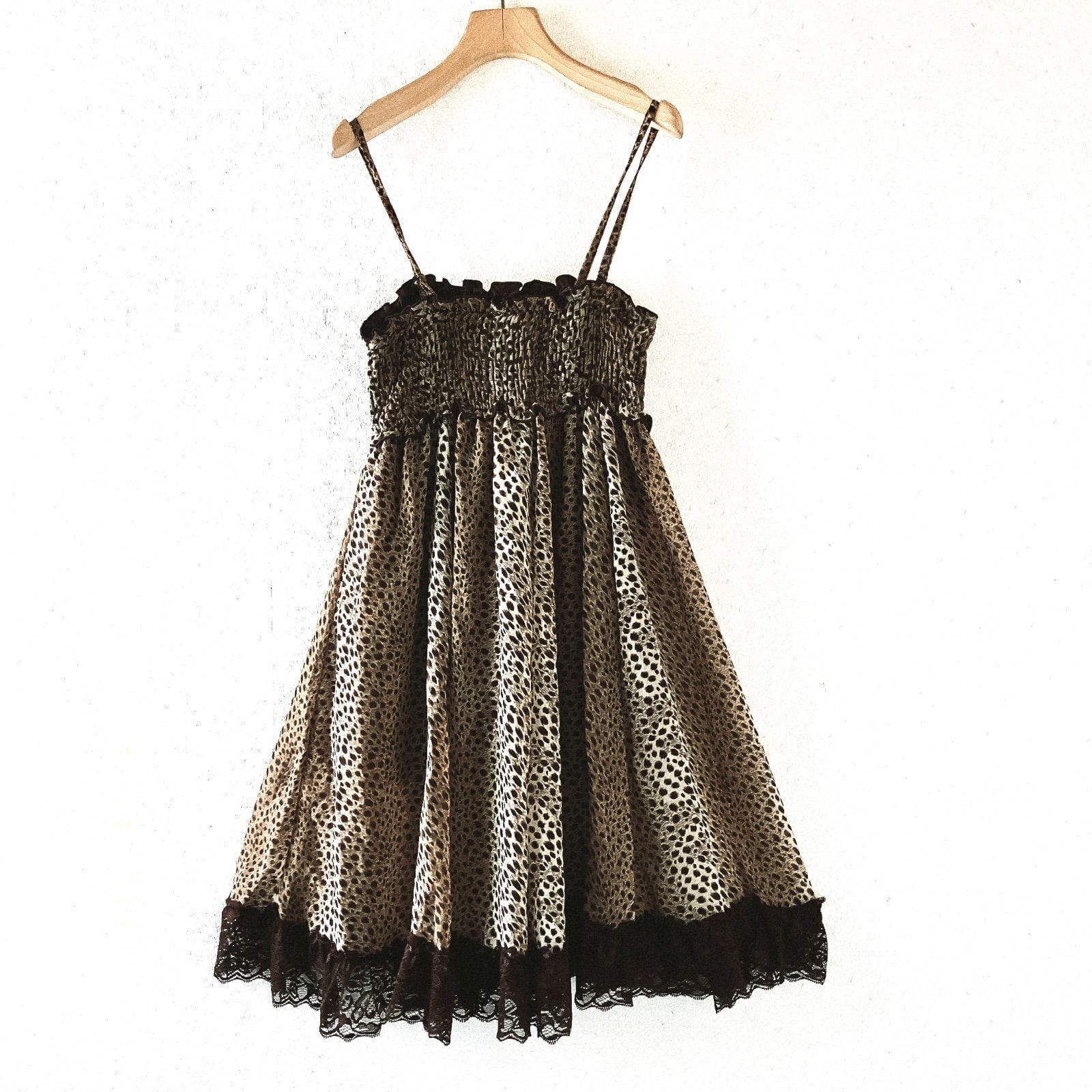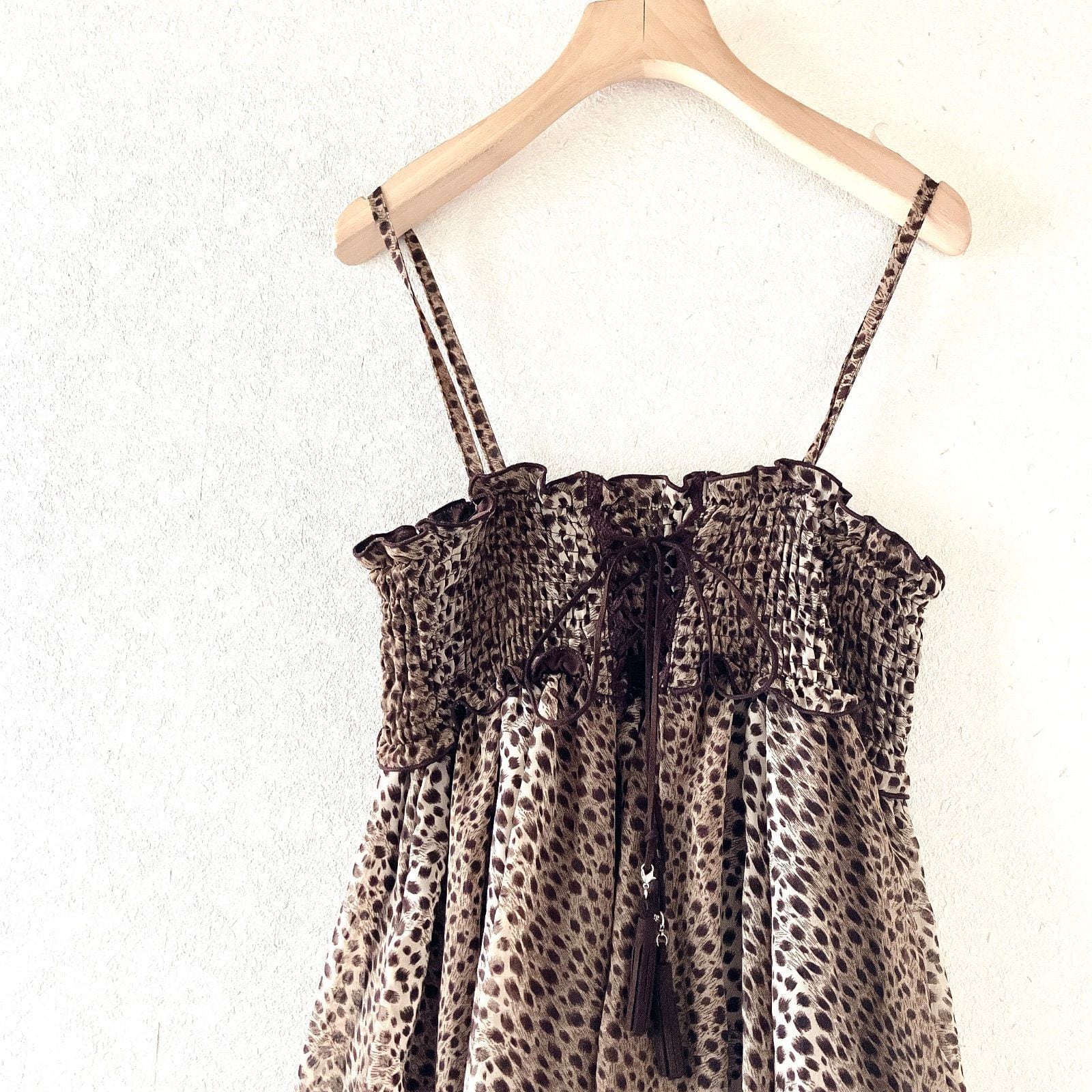 Y2K フェアリーグランジ キャミソールワンピース キャミワンピ レオパード ヒョウ柄 姫系 姫ギャル 平成ギャル リボン バレエコア L