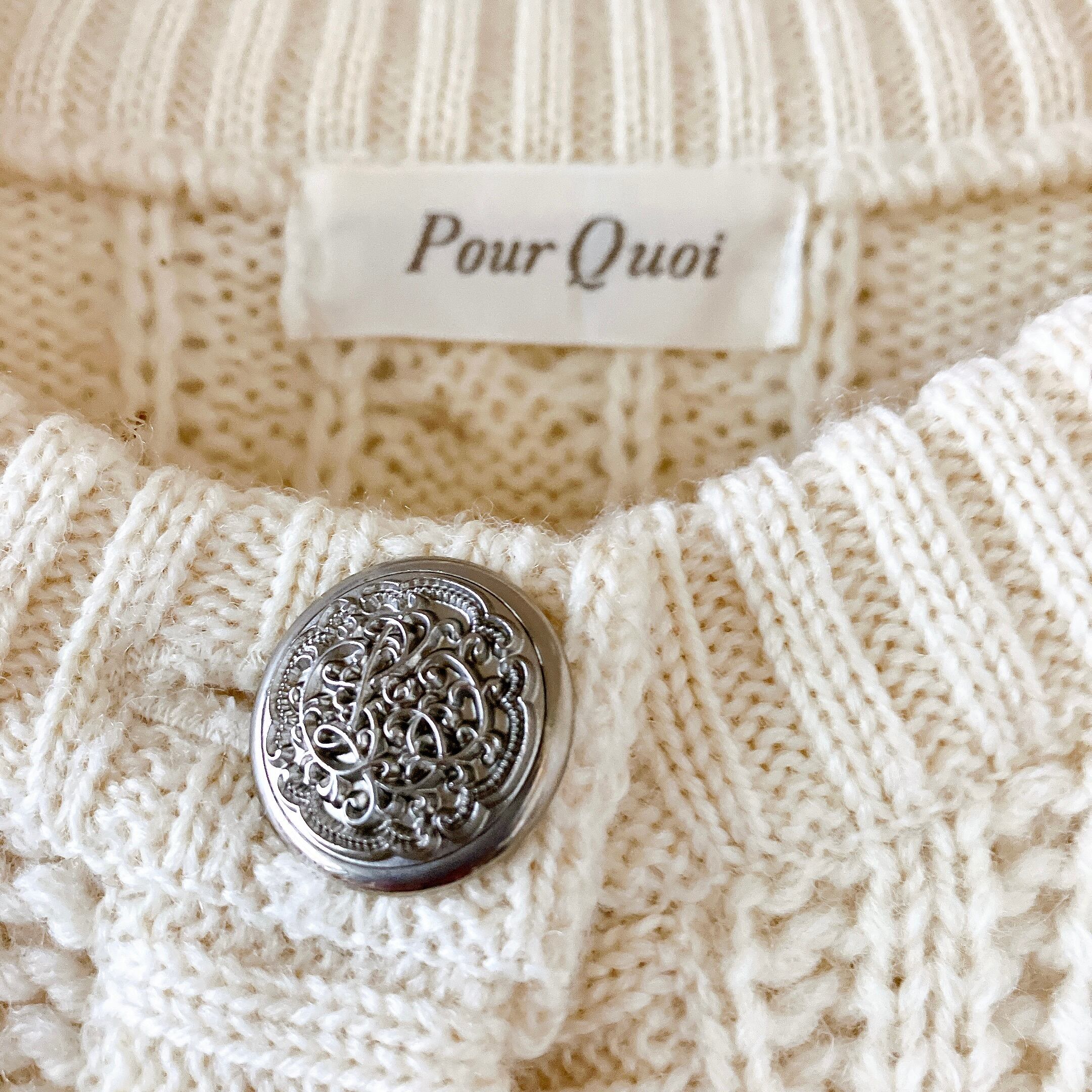 ケーブル編み アラン編み ニット カーディガン メタルボタン ポンポン ニット アイボリー レトロニット