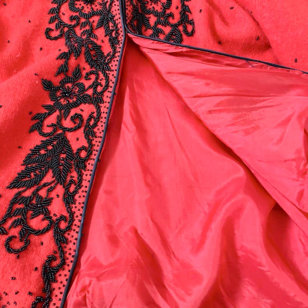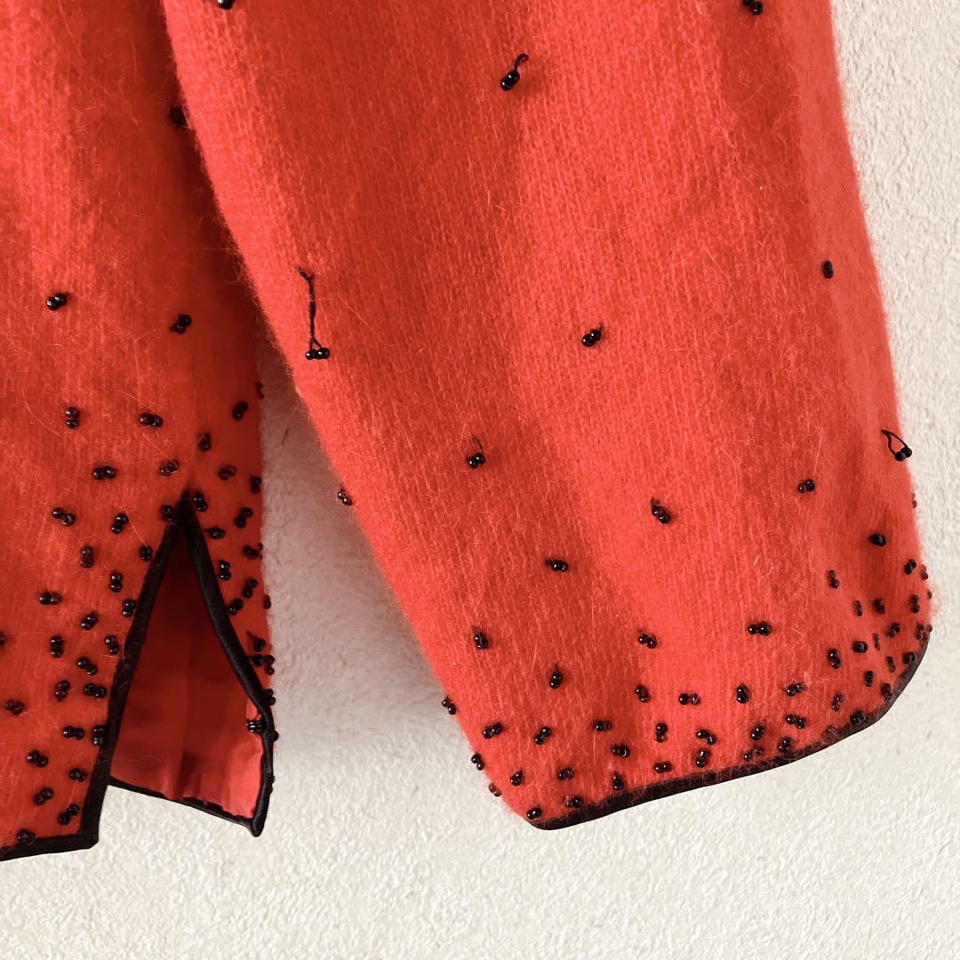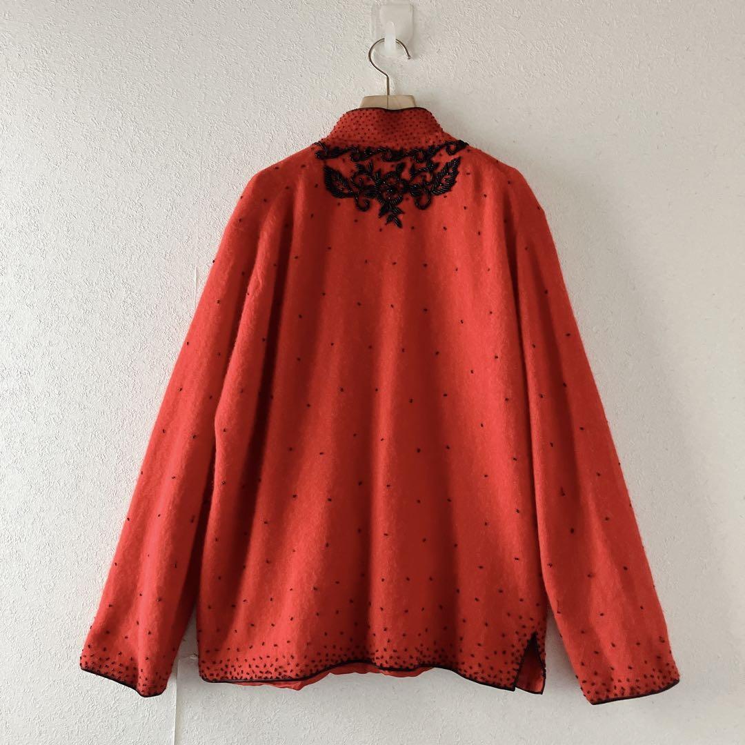 ビーズ 花柄 刺繍 ニット カーディガン ビジュー 赤 ヴィンテージ レトロ 個性派